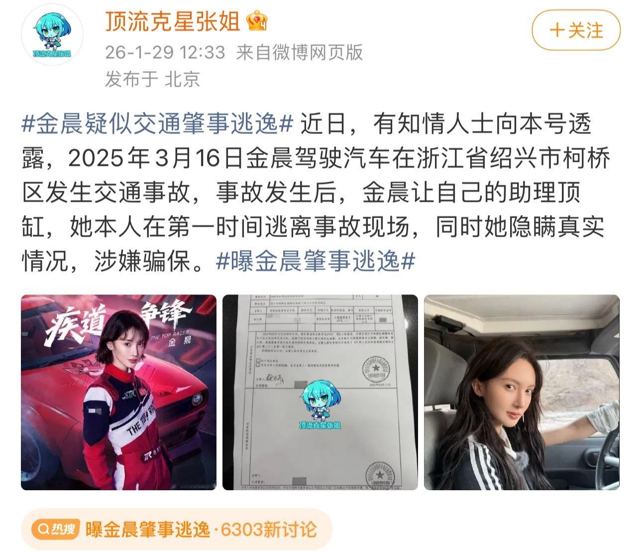 曝金晨肇事逃逸真假的现在肇事逃逸顶包直接可以退圈了不至于这么蠢吧