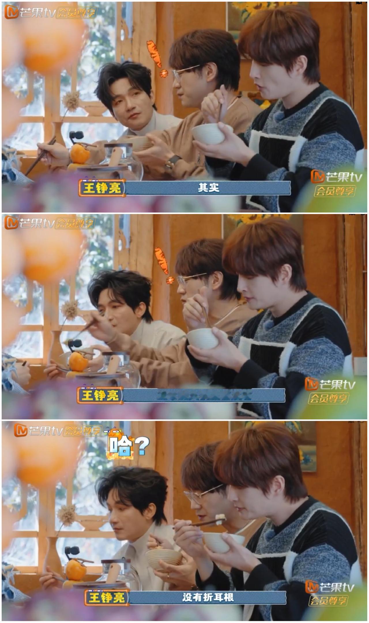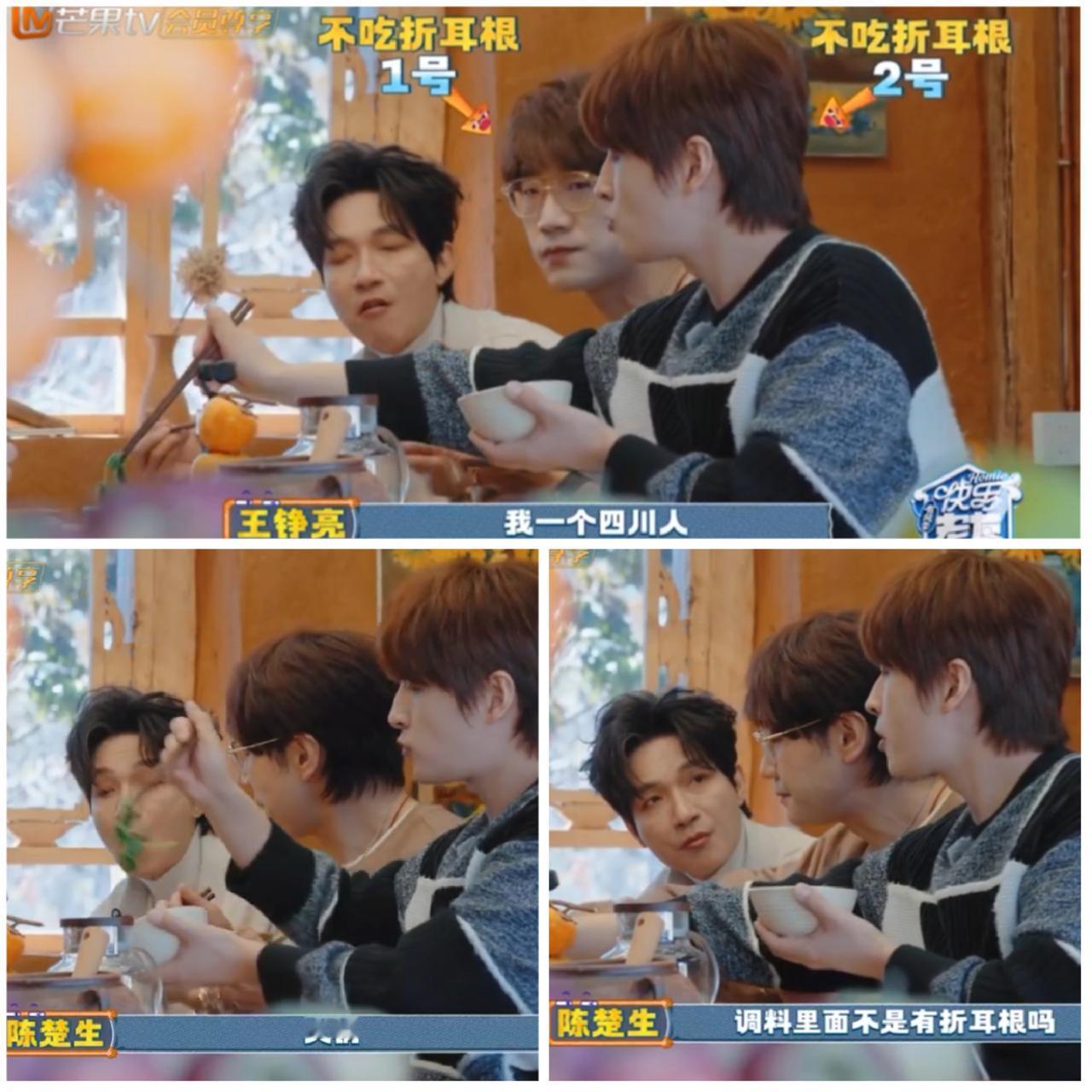 陈楚生听王铮亮这样一说 对于这件事才恍然大悟, 自己竟然深信了那么多年。 陈楚生兄弟6人 品尝纳西族喜宴菜品, 突然吃到折耳根, 甚是喜爱。 而王铮亮和张远躲得远远的, 坦言忍受不了这种味道。 陈楚生一脸茫然, 强调一般火锅里都有折耳根作为调料, 疑惑他们怎么会吃不惯呢? 王铮亮这个四川人 一听这话 马上觉得不对劲, 反驳 正常的火锅里没有折耳根作为调料。 哎呀, 陈楚生当初第一次吃火锅 是不是被告知 如果吃火锅就要学会吃折耳根, 就导致他不得不吃上了, 最后爱上了这种味道呀。 那个告知陈楚生 折耳根是火锅必备调料的人, 想必是跟他开玩笑的, 想不到陈楚生当时居然相信了。 直到听到王铮亮澄清, 陈楚生这才恍然大悟。 那个人真的把陈楚生“坑骗”得好惨呀。 不过因为这个美丽的误会, 陈楚生从此爱上了折耳根。 连那么精明的陈楚生都可以“哄骗”, 那个人真的很高明吧