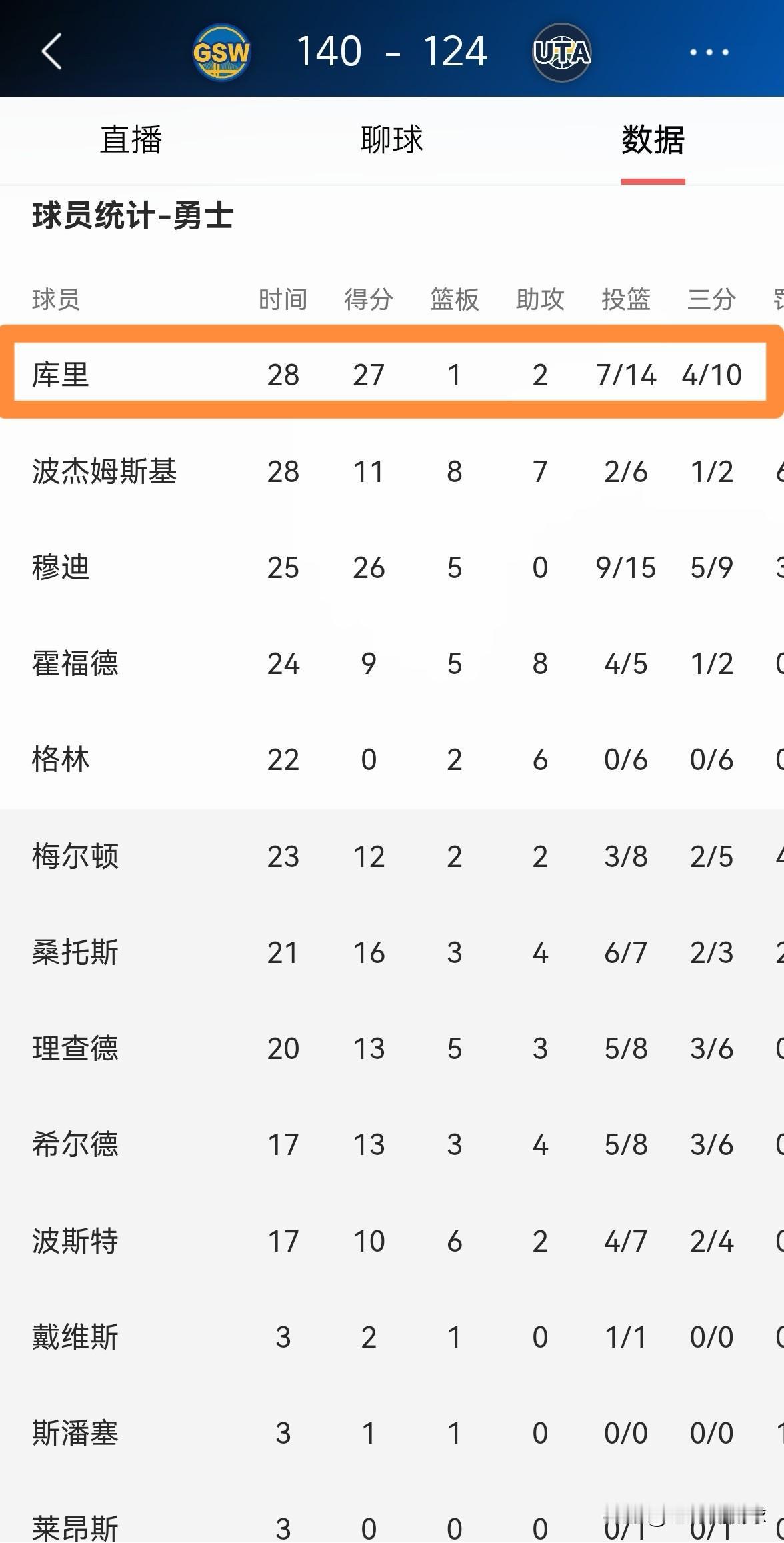 勇士官方真是特别的懂事!今天勇士在客场以140:124轻取爵士,本场比赛库里轻松轰下27分2助攻2抢断。在比赛结束以后,勇士官方特意更新社媒晒出了一张赢球海报,值得一提的是,库里荣登球队的赢球海报。 老实说,以库里在本场比赛中的出色表现来看,他成为球队赢球海报的封面人物是无可厚非的,库里完全配得上勇士官方的厚爱。