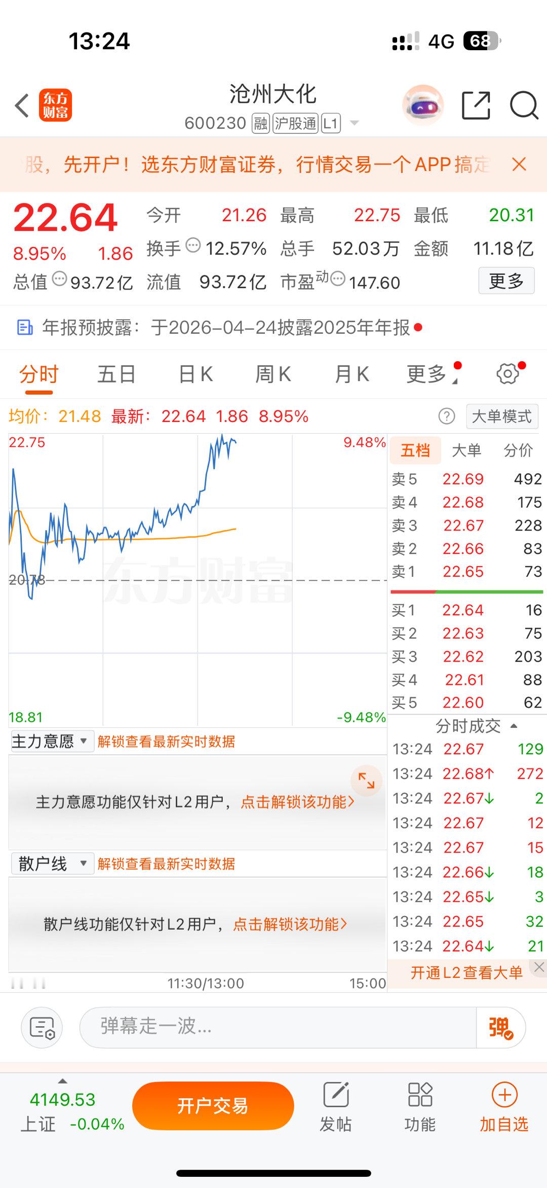 沧州大化600230强势冲击涨停,加油涨停去