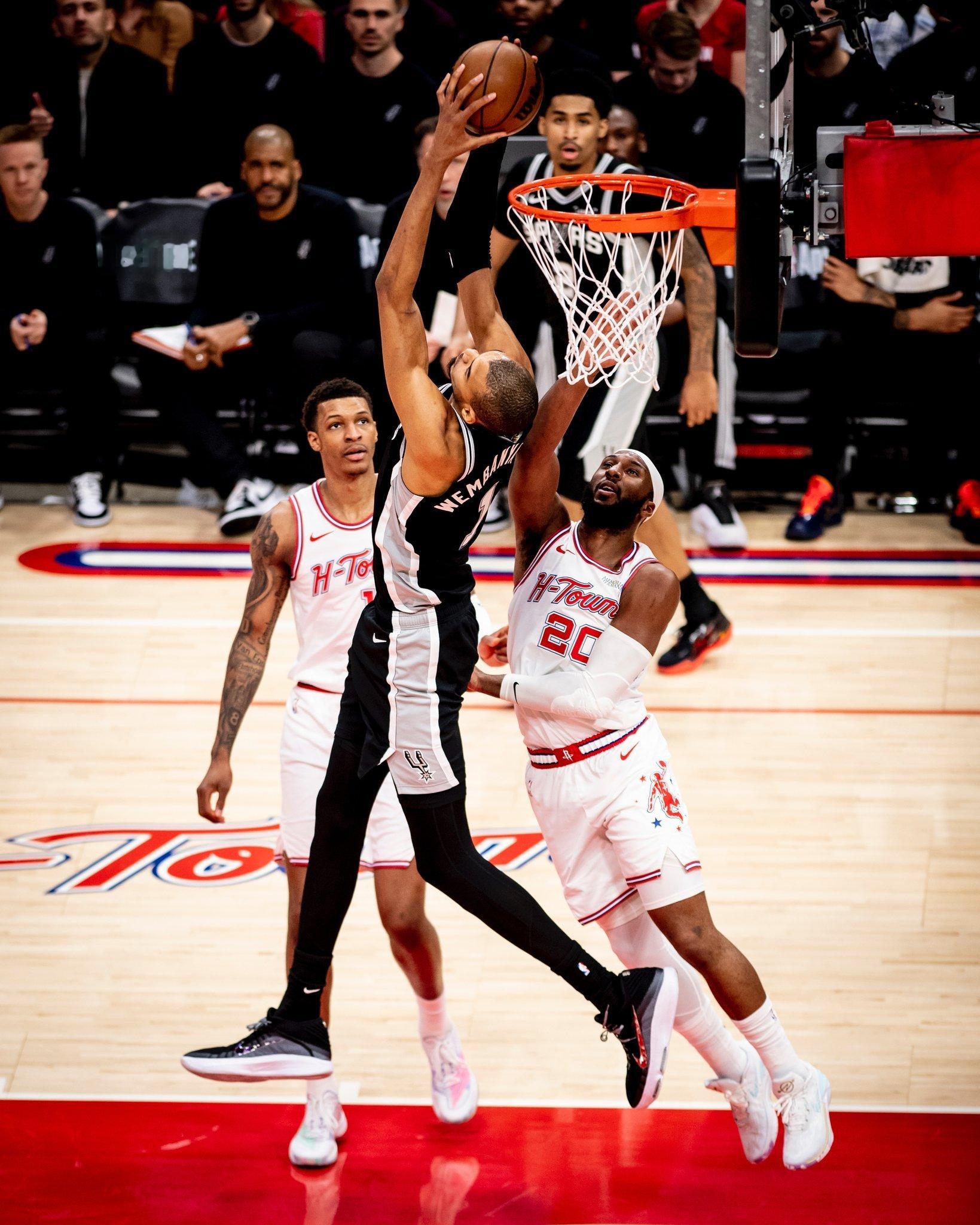 全场比赛结束!马刺客场111-99复仇火箭队马刺(32-15):文班亚马28分