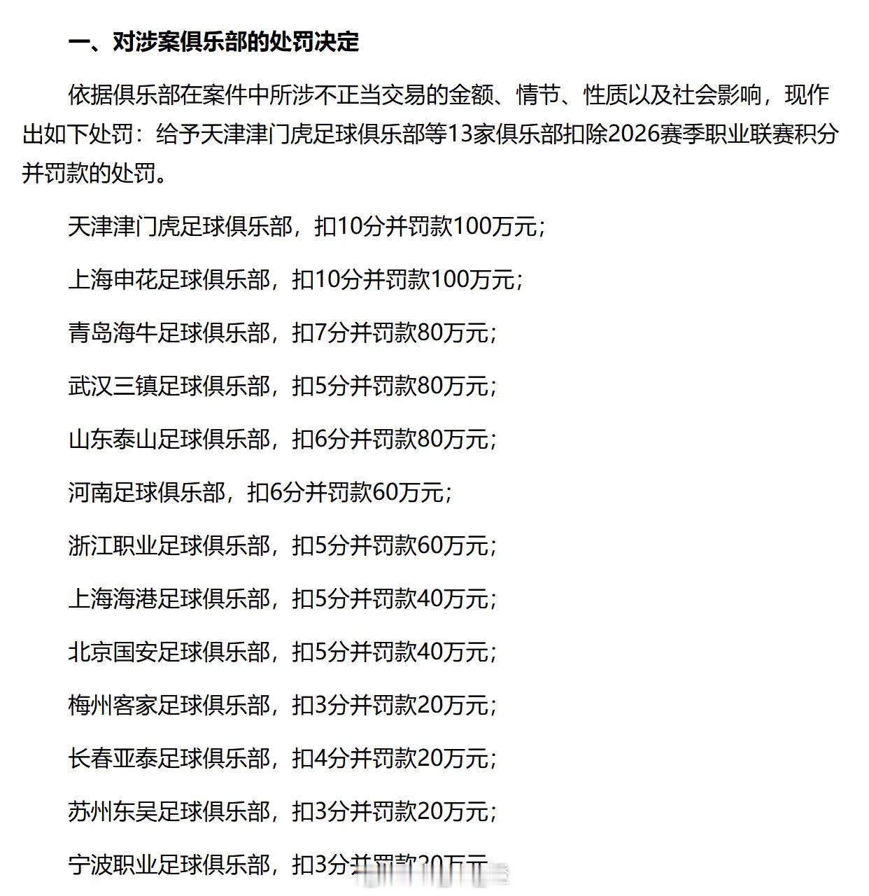 中国足协官方版处罚决定