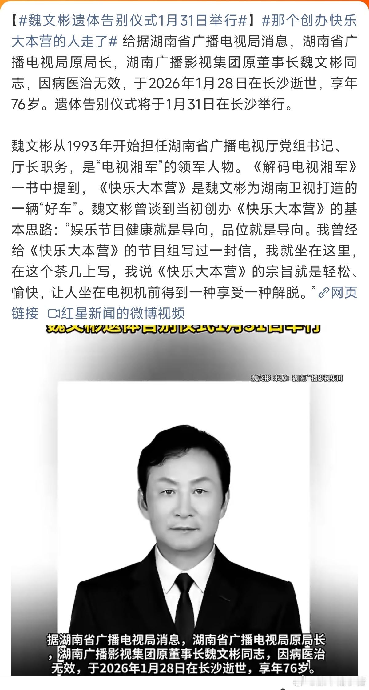 那个创办快乐大本营的人走了原来是他创造了以前很多青春回忆!魏老您一路走好