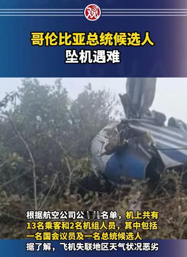 哥伦比亚总统候选人,坠机遇难! 看到这个消息后,我想起了伊朗前总统莱西。当初,他也是坠机遇难的。据了解,哥伦比亚这次飞机失联地区天气状况恶劣。是不是有点熟悉? 搜救工作一开始就遇到了大麻烦,比想象中还要艰难得多。 这里长年种植着古柯草,也就是制造海洛因的原料,还有“民族解放军”这样的武装叛军在这一区域活动,环境复杂到了极点。 不管是地面搜救队伍,还是空中的搜救直升机,都受到了严重的干扰,根本无法快速定位飞机的具体位置。 搜救队员们冒着危险,一步步在山区里搜寻,脚下是泥泞难行的山路,周围是看不清前路的浓雾,还要时刻留意周边的复杂环境,每走一步都格外谨慎。 直到后来,搜救人员才在山区的一处山头上,找到了飞机的残骸,现场的画面让人触目惊心。 机身已经被严重损毁,残骸散落得到处都是,有的碎片甚至被冲到了山坡下,一眼望去,根本看不到完整的机身轮廓。 经过仔细确认,机上13名乘客和2名机组人员,全部遇难,没有一人幸存。 其中就包括准备参加3月国会选举的总统候选人萨尔塞多,还有国会议员昆特罗及其团队成员,一场空难,让多位政界精英瞬间离世。 看到这里,我脑子里瞬间就浮现出了伊朗前总统莱西坠机遇难的场景。 那种突如其来的悲剧,那种搜救无果的煎熬,还有事发时的恶劣条件,和这次哥伦比亚的空难,真的太像了,熟悉得让人心里发沉。 莱西的坠机事件发生在2024年5月19日,当时他正乘坐直升机,从伊朗东阿塞拜疆省的霍达阿法林县前往该省省会大不里士。 不管是另外两架直升机的机组人员,还是地面指挥中心,都无法和它取得任何沟通,就像这次哥伦比亚的飞机一样,毫无征兆地失联了。 莱西坠机的事发地,同样是山区,而且当时的天气状况,和哥伦比亚这次几乎如出一辙。 复杂的气候条件,给搜救工作带来了巨大的阻碍。 事发地区位于一片自然保护区内,树林茂密,天气潮湿多雾,搜救队员们只能靠徒步前行,一点点排查,无人机的探测也受到了大雾的干扰,无法清晰地捕捉到地面的画面。 哥伦比亚这次的空难,根据目前的初步判断,恶劣天气也被多部门列为事故的首要关联因素,至于是否还有其他原因,目前还在进一步调查中。 哥伦比亚的搜救工作还在继续,工作人员一边清理飞机残骸,一边做好遇难者的善后工作,遇难者的遗体正在被逐步转移,家属们的悲痛,可想而知。 生命真的太脆弱了,一场突如其来的事故,就能轻易夺走一切。 目前,哥伦比亚方面还在进一步调查空难的具体原因,我们能做的,就是默默关注事态的进展,为遇难者祈福,也希望家属们能早日走出悲痛。 同时,也希望所有的航空出行,都能避开恶劣天气的影响,每一架飞机都能平安起降,每一位出行的人,都能平安抵达目的地,不要再有这样的悲剧发生。 毕竟,对于每一个人来说,平安,才是最重要的事情。 对于这件事,您有什么想说的吗?欢迎评论区留言讨论。 信息来源: 观察者网 2026-1-29 哥伦比亚总统候选人坠机遇难