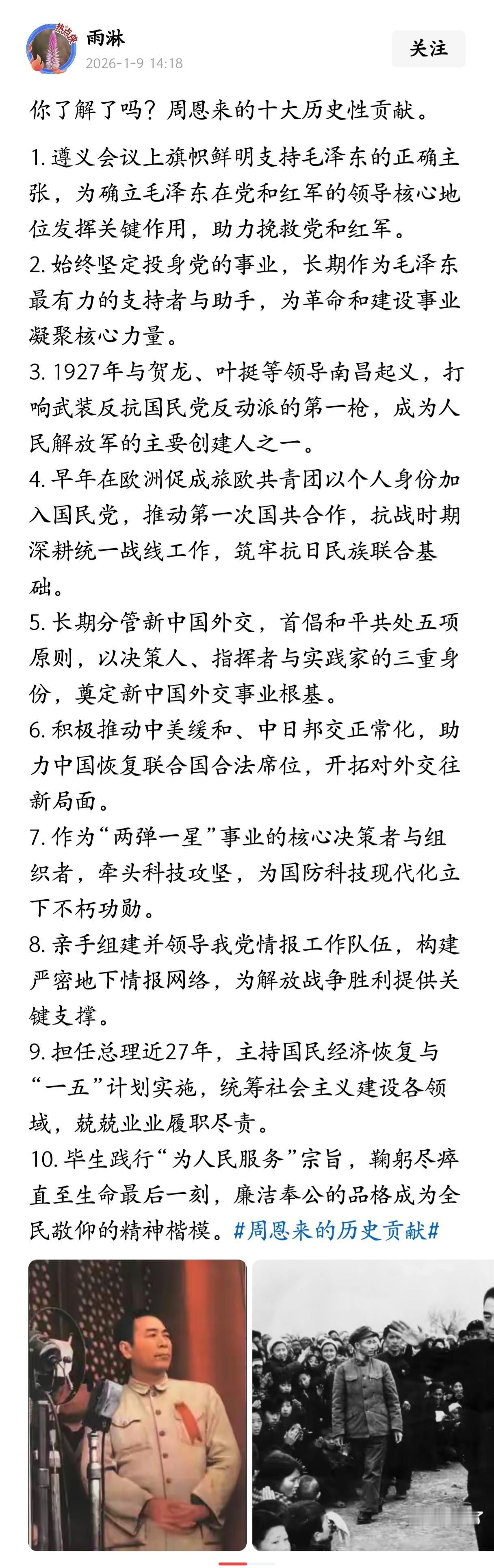 周恩来的十大历史贡献,作为中国人应当记住他。