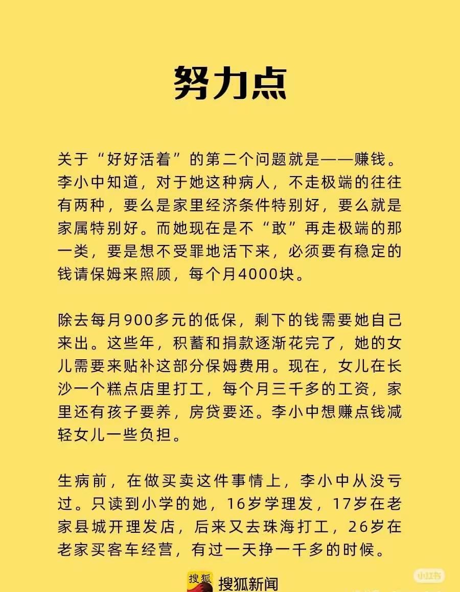 李小中是一个有思想和对自己有要求的女性,尽管身体有问题,李小中依然是个特别有思想的女性,而且思想丰富,敏感,多疑,对自己有要求,而且不俗套不马虎不凑合也绝不含糊。虽然身体受损,但李小中是个新女性无疑,李小中也想过有质量高质量的生活,尽量让自己过体面一点的生活,这本身没有错。 李小中