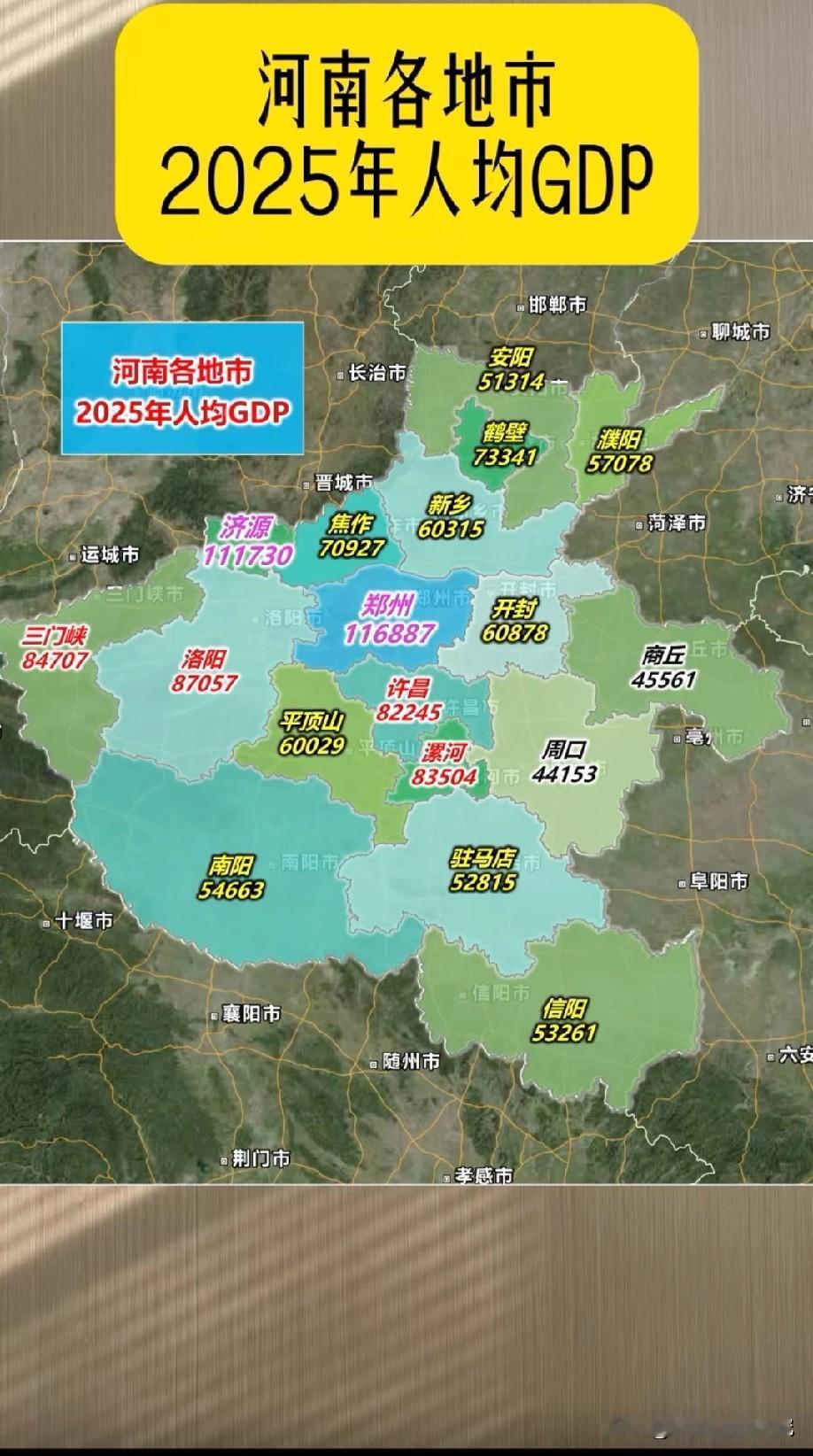2025年河南省各城市人均GDP数据水平情况,图片里属于2025年河南省各城市的人均GDP数据,河南省的网友们可以看看自己家乡城市2025年的人均GDP数据水平情况怎么样。