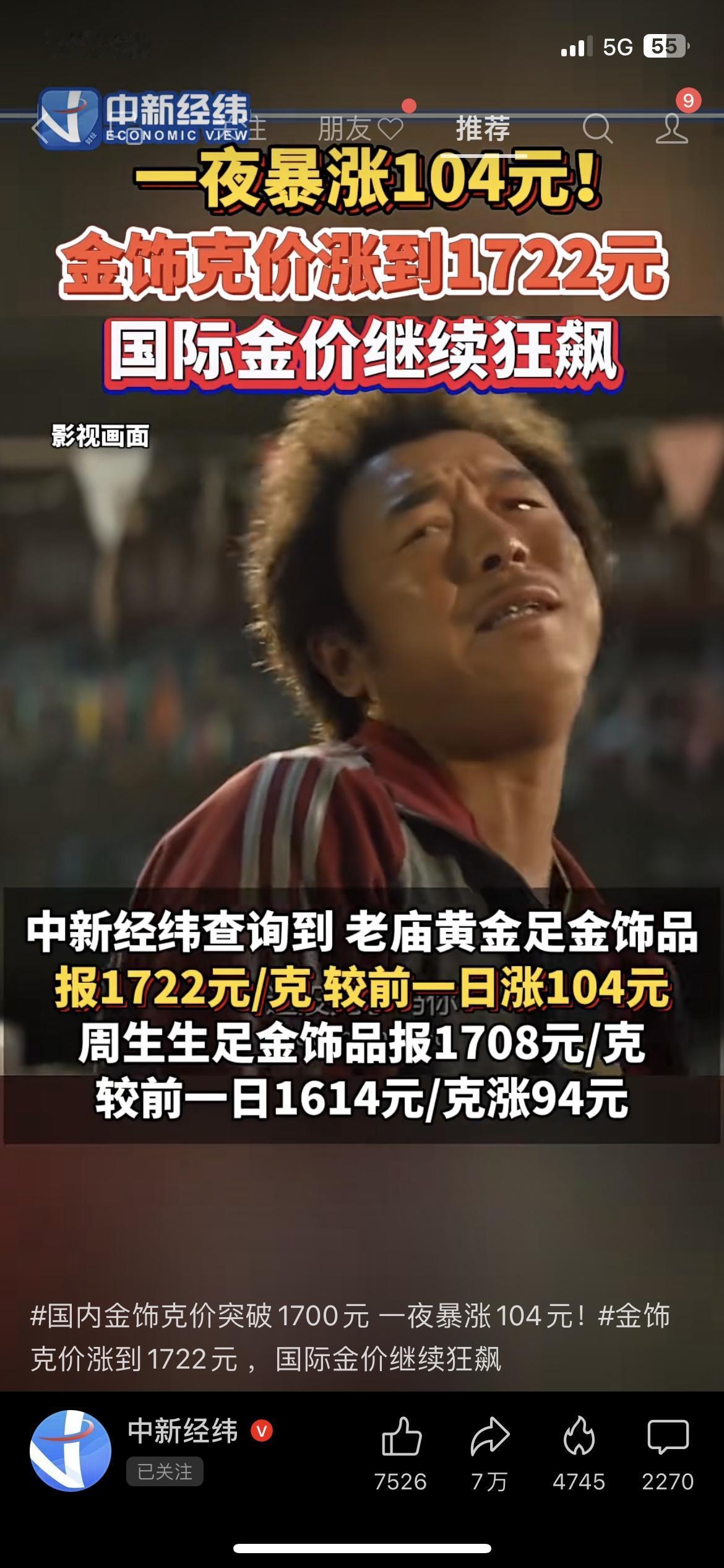 金饰克价飙到1722元!单克涨104,买30克手镯多花3120块! 咱们刚被菜价虐完,又遭金价暴击!老庙等品牌集体疯涨,国际黄金也破了5500美元/盎司,不少人喊着囤金抗通胀,实则踩坑都不知道! 金饰是消费不是投资,别把家底砸在溢价里。 你会跟风买金饰,还是定投黄金ETF? 黄金理财 民生经济 金价暴涨