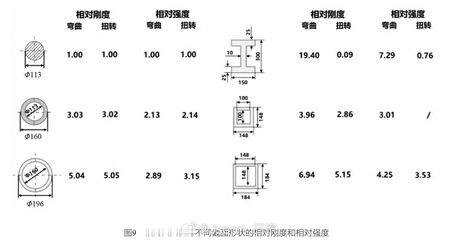 结构汽车零部件 这张图是理解汽车零部件(包括白车身部件)外形的基础实心圆管为1,做基础的话相同截面积(质量)做成其他各种结构能产生的相对刚度比值别只会用磁铁了 所以你们要理解为啥要想尽办法做空心结构这个和群众淳朴的思维是想反的
