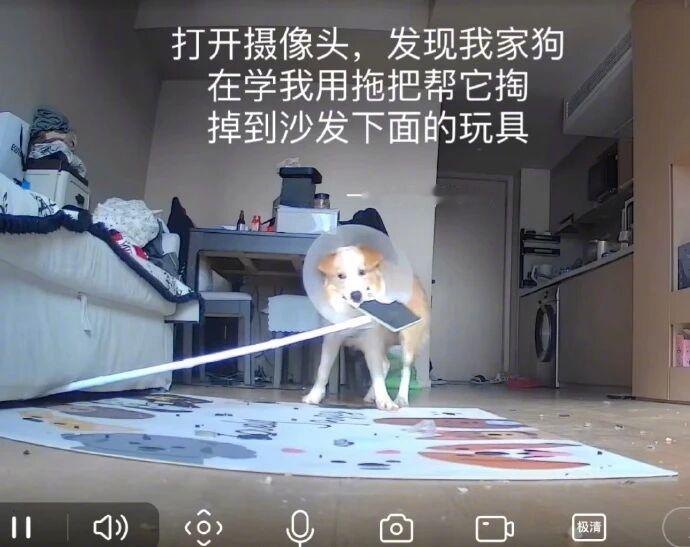 一生好学的边牧老师,已经开始学主人用拖把掏沙发下的玩具了......
