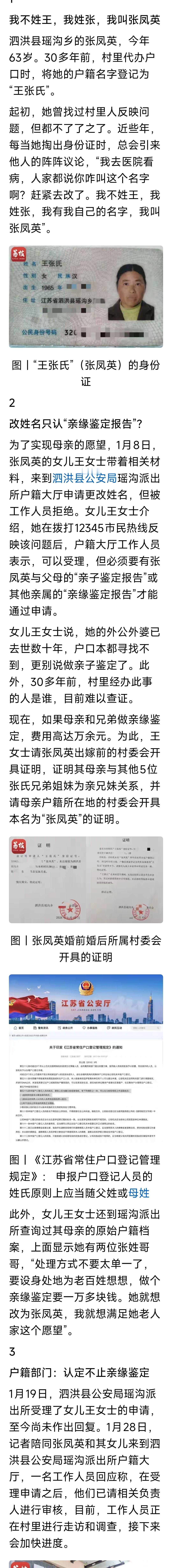 “处理方式不要太单一了,要设身处地为老百姓想想,做个亲缘鉴定要一万多块钱。她就想改为张凤英,我就想满足她老人家这个愿望”。