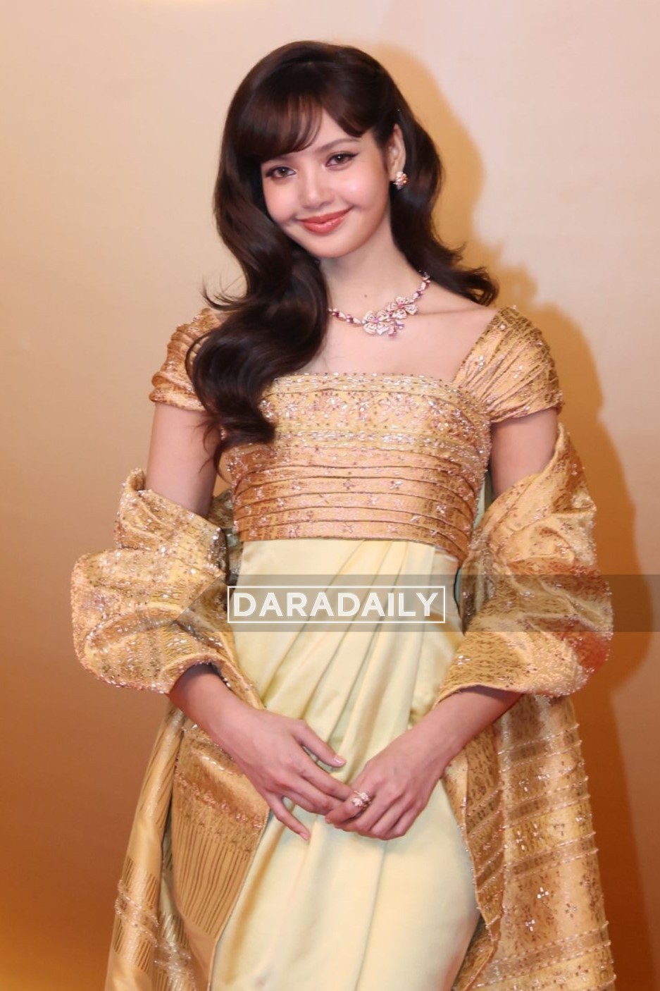 Lisa in Custom Balmain昨日出席AmazingThailand 大使专属之夜的Lisa,身着的金黄礼裙来自Balmain 为她量身打造的高级定制,该作品设计灵感来自Pierre Balmain在1960春夏高级定制系列的经典礼服(Nuit à Londres)。该礼服起初是Balmain为泰国王太后诗丽吉王后打造,而在出席专属之夜品牌再为Lisa重新构思承袭典藏版型,礼服选取黄色、玫瑰金及金色泰国锦缎,搭配黄绿色泰国真丝缝制,传统泰式面料赋予礼服独特光泽与肌理,与佩戴的BVLGARI 高级珠宝交相辉映,演绎出传统与现代交织、优雅与华贵兼具的风采。时尚灵感解读