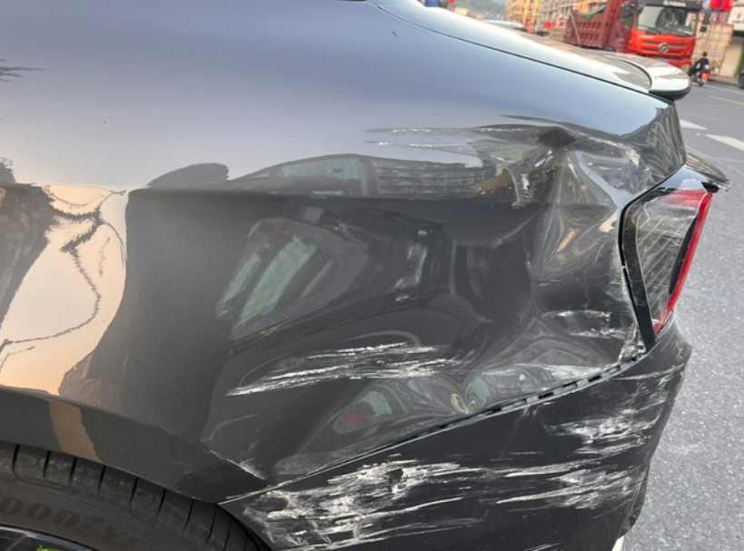 领克是真硬啊 被撞啦,尾灯破了,后杠破了,后翼子被怼进去了,但是,我发现,车漆好像问题不大。白色的是对方车上的漆,用湿纸巾擦一下就掉了,感觉抛光一下就行呢。