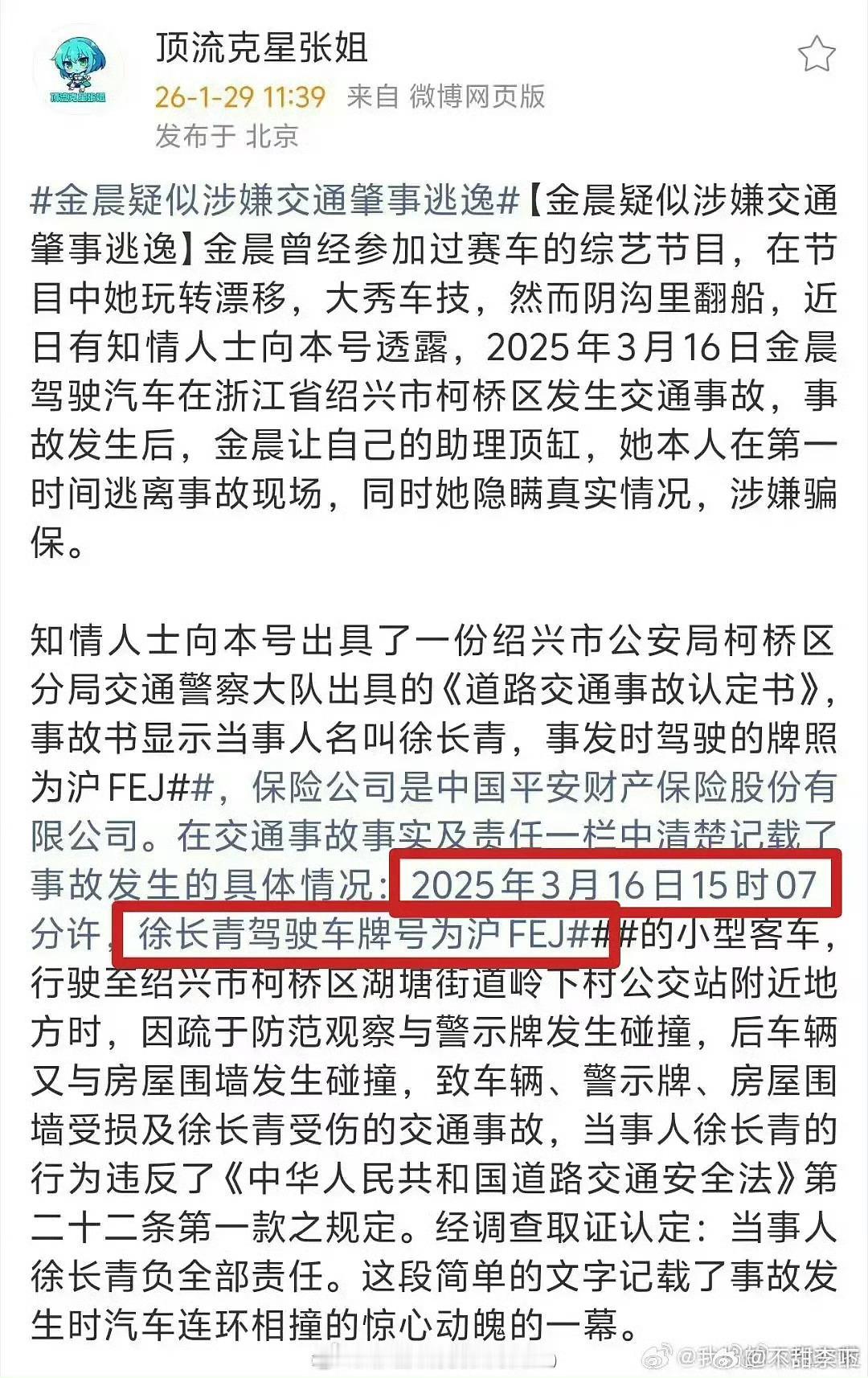 曝金晨肇事逃逸最近内🐟的瓜怎么一个接一个的