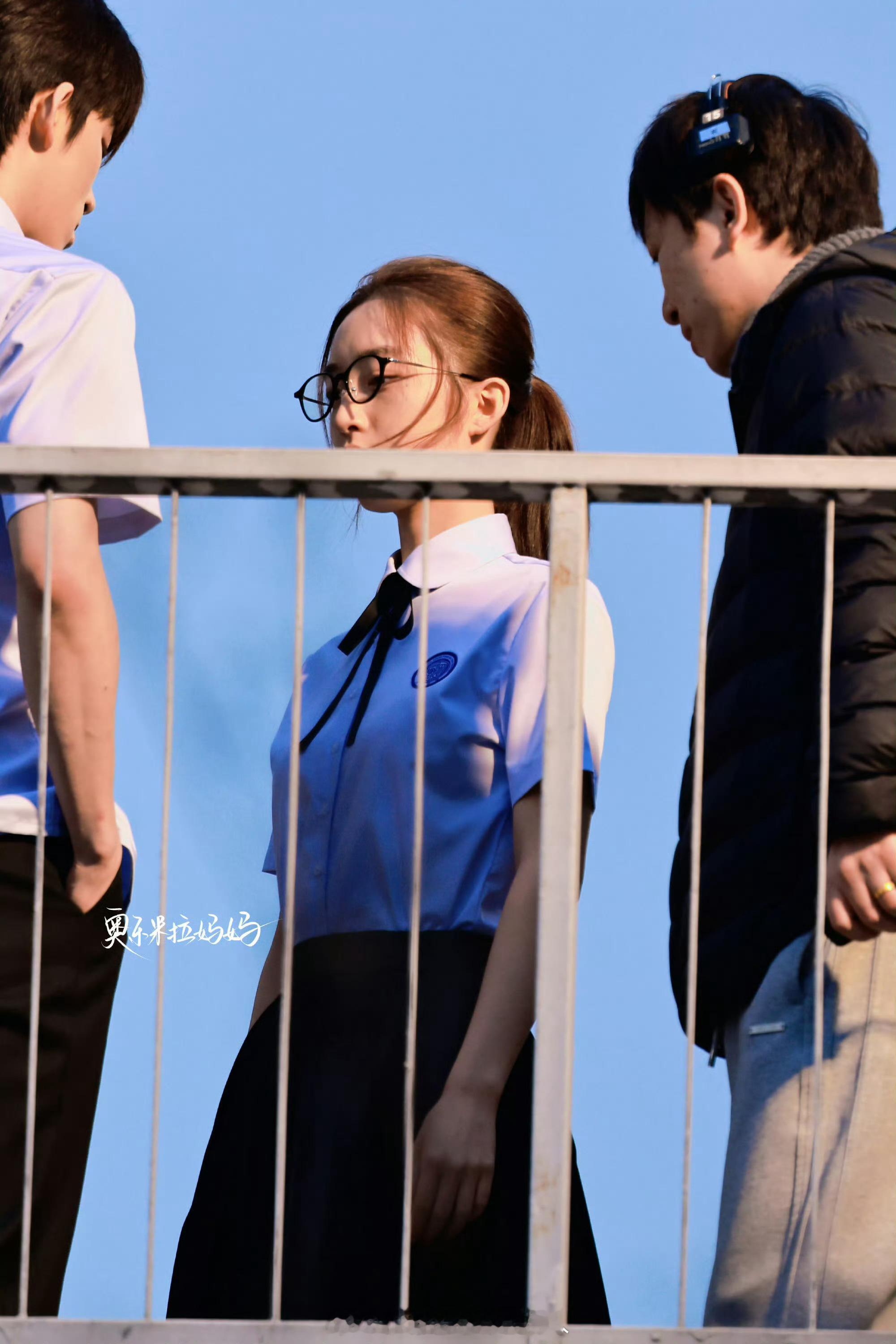 张天爱跟素人合影,胯真的好宽,大宅院似的