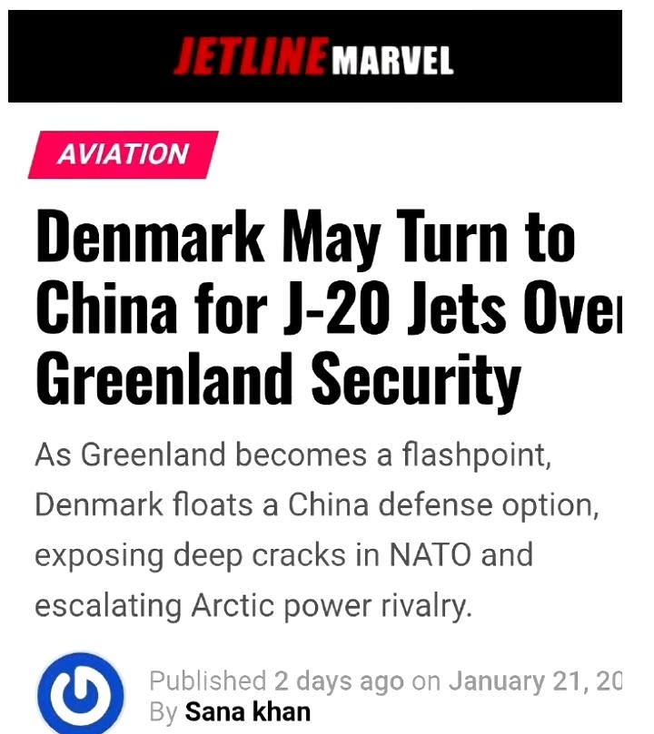 1月21日印度一家名为Jetline Marvel的航空媒体率先放出“猛料”,声称如果北约无法保护格陵兰岛,丹麦就可能转向中国,采购歼-20和歼-10C战机。拜托这些外国媒体,不要有事没事都来碰瓷嘛,我们不想搅和欧美之间的矛盾,欧美之间的问题让他们自己解决,我们就当看剧。人家北约国家军事力量那么厉害,肥水不流外人田,他们是不可能到非北约国家买战斗机的。