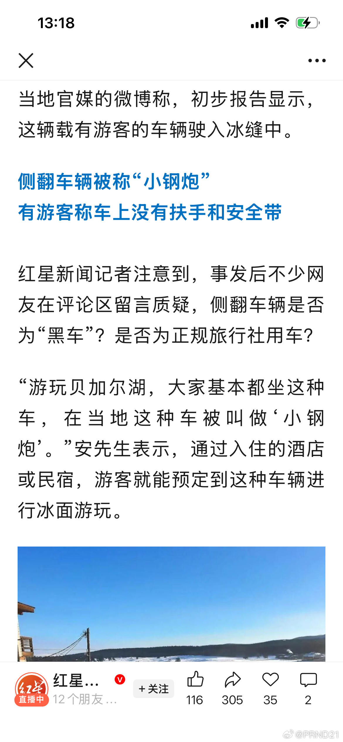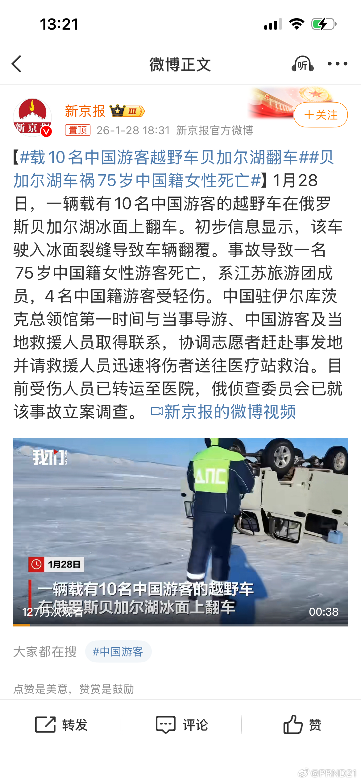 贝加尔湖车祸75岁中国籍女性死亡 从视频上来看,翻车的是UAZ 452(这个系列60年代就投产了,如今仍然在产,名字应该是UAZ+3开头的五六位数字,所以此处采用其最初车系的名字)……怎么说呢,这车首先是很老,60年代苏式车,被动安全性约等于没有……第二452还是设计很古老的越野面包车,重心相当高,操控性反正也不是不能用那种……面包版二蛋……第三这车质量也不咋地……从另一个角度,去俄国玩儿,体验这种迷之崭新古董车也合理……但相应的风险也较高,尤其考虑到当地驾驶者也“比较猛”……