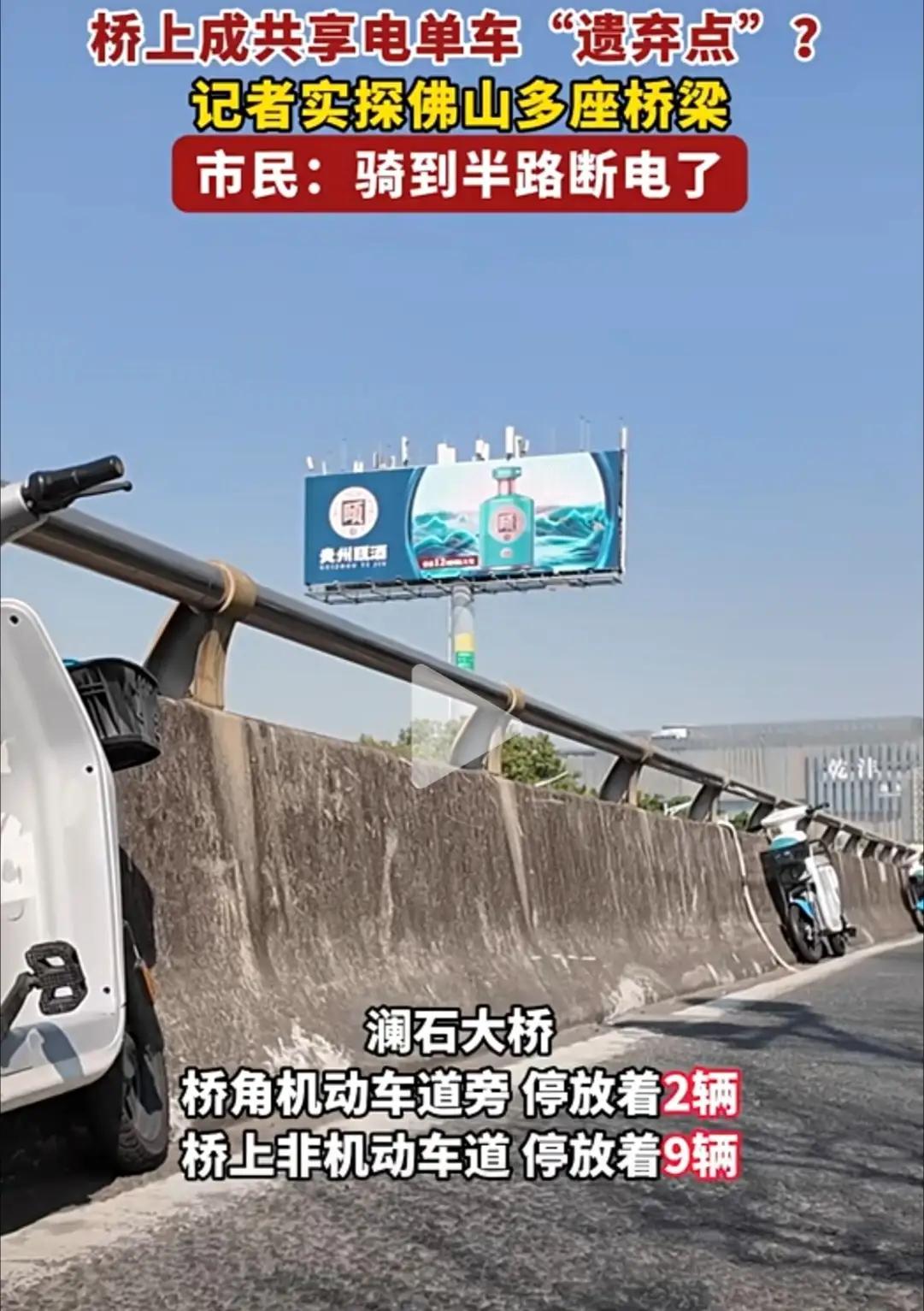 看到广东粤TV新闻报道,市民电动车如果乱停放,要罚款50元!执法单位是城管,城管终于出手了。本人表示不理解,为什么市民电动车乱停放要罚款?大把的共享电动车到处违停,政府不管!?要管也要先管共享电动车!难道政府怕资本家?(图1) 大家知道共享电动车的背后,都是资本家在烧钱,不惜代价的投入到共享电动车,目的最终就是为了上市,上市为了圈钱,上市完以后资本家就套现,剩下无辜的股民被收割! 当然,市民要爱护自己的城市,乱停放电动车肯定也不支持,但是作为交警、城管应该是多宣传,多引导,多教育为主!绝对不可以以罚代管。 相信大部分市民开电动车出行,主要是为了接送小孩,为了买菜方便,因为城市里面交通本来就拥堵,如果开车出行,那就是堵上加堵!到了目的地都没有停车场。 城市的管理者、城市的建设者,没有建设足够宽敞的马路、停车场,让大家开车自由出行、放心出行。那只有开电动车更便捷,更有时效! 其实大家留意一下,现在在城市里面,市民乱停放电动车的还是少数的,因为市民会爱惜自己的私人财产。但是共享电动车乱停放的是相当严重,有些还停到大桥上面,都不是马路边,你想一下停在大桥上会不会更影响交通拥堵?(图2-4) 然后很多公园门口,也是密密麻麻停着电动车!严重的占用公共资源,有些共享电动车常年累月都没有使用。(图5-7) 我们的交警部门,我们的城管部门是不是先管好共享电动车?! 市民的电动车毕竟都有登记,都有挂牌,要追踪管理很容易。共享电动车现在乱停乱放以后,也没人管,那才是可怕的! 希望城管交警部门不能以罚代管,对市民的电动自行车应该以教育为主,以引导为主。如果要管,也是先管好共享电动车!特别是把共享电动车扔在交通要道上、扔在大桥上,严重影响交通。 市民怎么样也不会把自己的电动车扔到交通要道上,扔到大桥上!因为对于市民来说,这个电动自行车是他个人的财产,是他每天出行,生活、工作的必需品。 (图片来源网络。如有侵权,请联系删除)