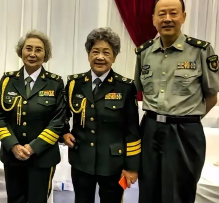 仔细看,左边的是表演艺术家袁霞,中间的是老艺术家陶玉玲老师,两位老师虽然年龄大了,满头白发,但精神矍铄,一身军装,尽显飒爽英姿!而站右边的是谁?看他气宇轩昂,气色盈和,能与袁霞、陶玉玲两位表演艺术家一起合影看来不一般!他也是演员吗?有谁认识他?