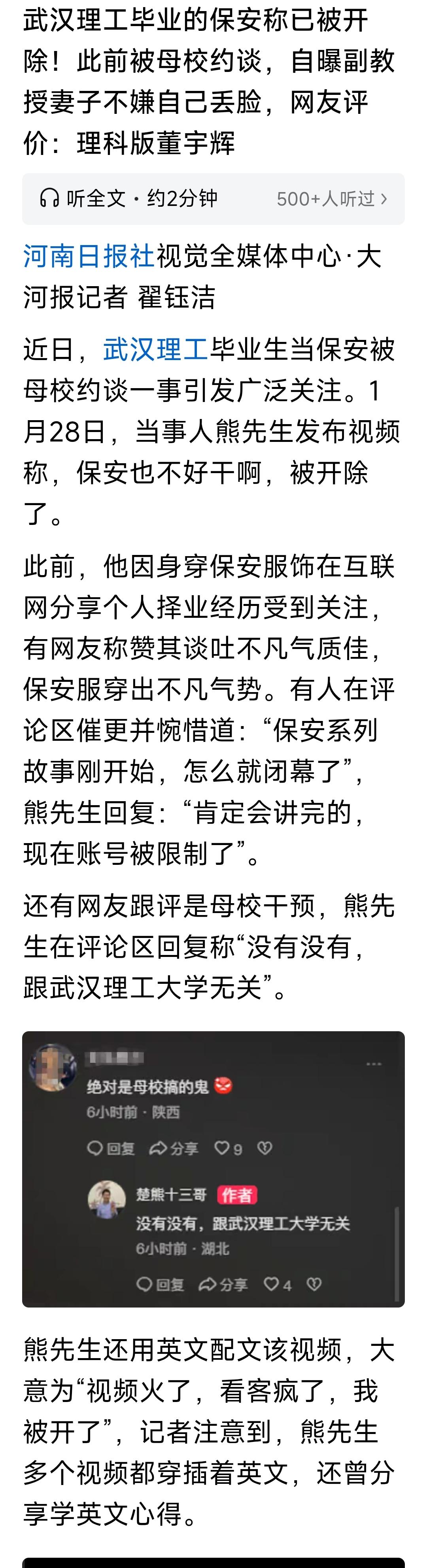他是想通过干保安这种活儿,博得粉丝量,然后好直播带货挣钱,并不是真正的想干保安。