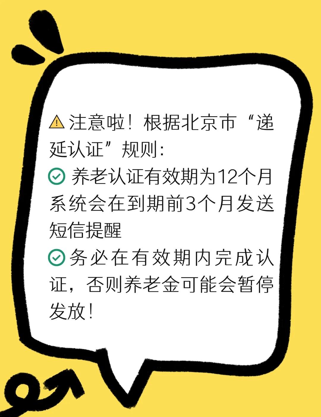您的养老认证待完成,请及时办理 年底了,您是否收到这条短信👇 “您的养老待遇资格认证即将到期,请及时办理”? 💡注意啦!根据北京市“递延认证”规则: ✅ 养老认证有效期为12个月 ✅ 系统会在到期前3个月发送短信提醒 ✅ 务必在到期前完成认证,否则养老金可能会暂停发放! 别担心~如果因未及时认证导致停发,只要补做认证,养老金会全额补发+恢复发放! 但为了避免影响节日用钱、生活安排,还是建议大家尽早办、主动办! ❓️有疑问?拨打人社服务热线 12333 咨询 [作揖]快转发给家里长辈,一起安心过好年❤️ 人社服务指南 养老认证 北京社保 养老金发放 12333 便民服务 年底提醒 办事指南 关注老年人