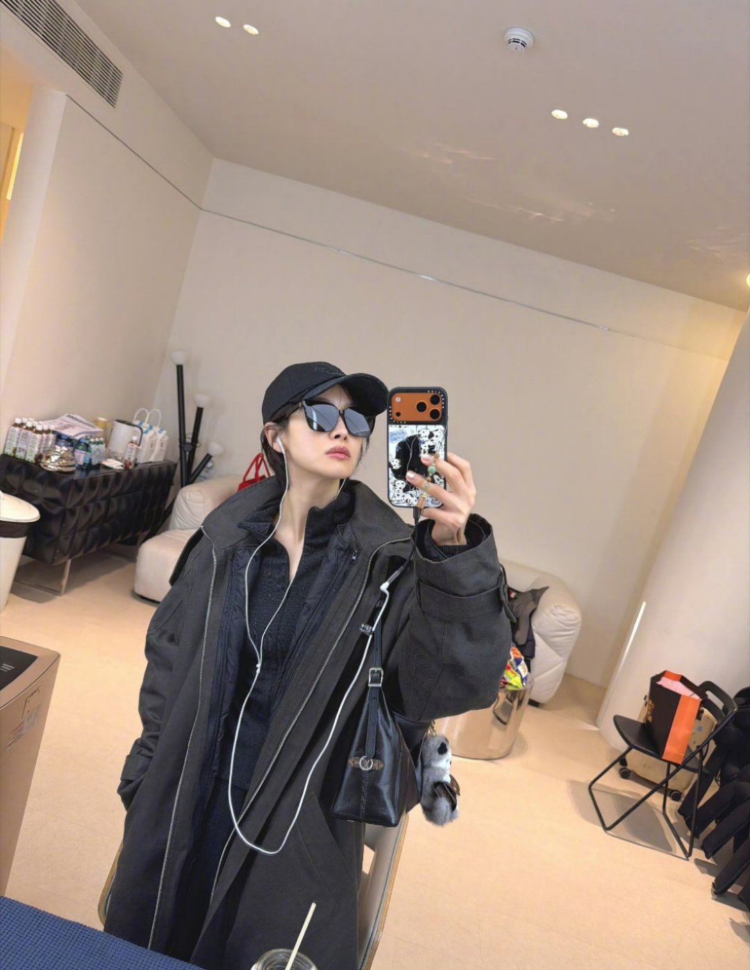 窦靖童,两个妹妹的“专属摄影师”。北京机场,她推着李嫣的行李箱。妹妹转头说话
