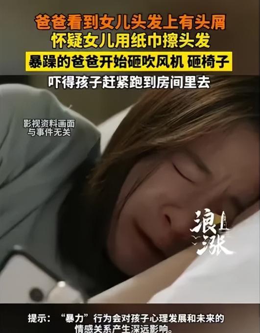 “有这样的父亲,何其不幸!”广东,女儿洗了头发,又吹干了头发,父亲却发现她的头发上有头屑,就一口咬定女儿用了纸巾擦头发,女儿反驳,说自己是用毛巾擦的,结果父亲暴怒,砸了吹风机,又砸了女儿的椅子,女儿恐惧地躲进房间,父亲更暴躁了,不停地砸女儿的房门,妻子制止丈夫,被丈夫殴打了,女儿的门被砸开之后,女儿也被父亲打了几巴掌。 看完这事儿我浑身膈应得慌,多大点事儿啊,至于把家里闹得鸡飞狗跳,对着老婆孩子动手动脚吗?而且这事还不是剧本,是2026年1月26日发生在广东的真实事件。 当天女儿按部就班洗完头,仔仔细细用吹风机吹干,本来一切都安安静静的,可父亲走过来扫了一眼女儿的头发,就盯着头顶零星的头屑皱起了眉,上来就质问女儿,是不是偷懒用纸巾擦头发,才会留下这些头屑。 女儿当时也吓坏了,小声反驳说自己明明用的是毛巾,没有用纸巾,可这话刚说出口,就像点燃了父亲心里的炸药桶。他瞬间暴怒,伸手就抓起女儿手里还没放凉的吹风机,狠狠砸在地上,“哐当”一声,吹风机直接碎成了好几块,零件溅得满地都是。砸完吹风机还不解气,又一把抓起女儿书桌旁的椅子,狠狠砸向墙壁,椅子腿当场就被砸断一根,木屑都飞了起来。 女儿哪里见过父亲这副失控的模样,吓得浑身发抖,连哭都不敢大声,下意识地转身就往自己的卧室跑,反手就锁上了房门,只想找个地方躲一躲,避开父亲的怒火。 可她万万没想到,这一躲反而更激怒了父亲,他追到卧室门口,先是用脚使劲踹门,“咚咚咚”的踹门声特别刺耳,听得人心里发慌,踹了几下不过瘾,又捡起刚才砸坏的椅子碎片,一下下砸在门板上,没过多久,门板上就被砸出了好几个坑,漆面剥落,眼看就要被砸穿了。 这时候,孩子的妈妈实在看不下去了,哪怕自己也吓得双腿发软,还是硬着头皮上前阻拦,她拉着丈夫的胳膊,劝他冷静一点,跟他说女儿真的没有撒谎,可失去理智的父亲根本听不进去,反手就扇了妻子几巴掌,力道大得让妻子踉跄着后退了好几步。 后来他还不解气,抓起旁边的一个大箱子,狠狠砸在妻子身上,妻子被砸得疼得说不出话,胳膊上瞬间就青了一大片,可就算这样,她还是没有放弃阻拦,只是不敢再靠得太近。 就这样,父亲在门口砸了十几分钟,最终还是把女儿的房门砸开了。门一开,他就冲了进去,一把揪住女儿的胳膊,不管女儿怎么哭着求饶,还是抬手扇了她好几巴掌,嘴里还不停的骂骂咧咧,发泄着自己的怒火。 孩子母亲说,那天丈夫就像疯了一样,眼里根本没有老婆孩子,只有自己的怒火,哪怕她反复解释,说头屑可能是洗发水不合适,或者女儿没洗干净,跟用不用纸巾没有关系,可他压根一句都听不进去。 视频曝光之后,网友们彻底炸了锅,有人气不过,还扒出了这位父亲的正脸照,照片里的他看起来一脸凶相,一点都没有为人父的温和。大家纷纷吐槽,就算女儿真的用纸巾擦了头发,又能怎么样?几块钱的纸巾而已,至于动这么大的火气,甚至动手打人吗? 还有网友调侃,这位父亲怕不是在外边受了气,没地方发泄,就回家拿老婆孩子撒野,典型的窝里横,在外边怂得不行,回家就装横摆架子。 其实明眼人都能看出来,头屑从来都不是问题的关键,这位父亲的暴怒,本质上就是控制欲太强,又不会管理自己的情绪。他习惯了在家里说一不二,习惯了女儿和妻子无条件顺从自己,一旦女儿敢反驳他,一旦他的“权威”被挑战,就会用最极端的方式发泄,用暴力来压制对方,以此来找回自己的所谓“面子”。 让人无奈的是,这种因为琐事引发的家暴,其实并不少见。2024年6月11日,广东省高级人民法院和广东省妇联就联合发布过一个未成年人司法保护的典型案例,也是广东的一位父亲,因为孩子没按时完成作业,就对孩子实施家庭暴力,把孩子打得浑身是伤,最后被公安机关出具了家庭暴力告诫书,孩子的抚养权也被变更给了母亲。 可这次事件里的这位父亲,截至2026年1月29日,还没有看到有进一步的处理消息,不少网友都呼吁警方尽快介入,严肃处理这位父亲,不能让他就这么算了。毕竟家暴从来都不是家务事,只要动手了,就是违法行为,就应该受到惩罚,不仅是为了给这对母女一个公道,也是为了警示其他有暴力倾向的家长,不要把自己的情绪失控,变成伤害家人的武器。 希望这件事能给这位父亲敲个警钟,让他好好反思自己的行为,也希望所有的家长都能引以为戒,学会控制自己的情绪,用耐心和包容对待家人,不要让一时的冲动,毁掉孩子的一生,毁掉自己的家庭。毕竟,家是用来温暖彼此的,不是用来发泄怒火、施加暴力的地方。 信息来源: 纵深新闻|《见女儿头发有头屑父亲怒砸吹风机椅子 孩子吓得躲进房》