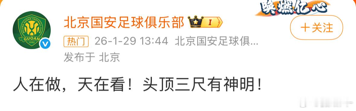 国安 人在做天在看确实是官方账号发的,行了,懂得都懂了