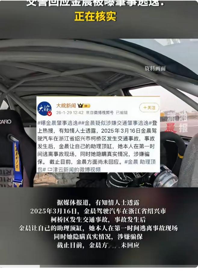 真的?顶包、逃逸、撤案疑云:某明星卷入的一场十个月前的车祸,真相是什么? 你听说了吗,吃瓜群众有福了,刚刚又吃了一个瓜,还记得去年火爆全网的孤注一掷?相信看过得应该对里面的女主印象深刻,职业模特被骗到国外化身成美女荷官,这个瓜据说有很大概率跟这个美女荷官有关系。 一场尘埃落定的插曲一场却被“旧事重提”的事故拉回现实,情节堪比悬疑剧。那么故事是怎么样的呢?我们把时钟拉回到2025年3月16日,发生在浙江绍兴柯桥区,金女士所在的车与另外一辆社会车发生交通刮蹭,本来是一场很普通的交通剐蹭,后面交警迅速到场。 按照正常流程走,当时站出来处理事故的是其助理——徐女士。许女士承认是自己驾驶机动车,并爽快地签了字,也承担了全责。一切看起来只是日常小插曲,很快便风平浪静。 然而,故事的转折来源于一则监控画面,车辆刮蹭涉及理赔,事后保险公司在例行调取监控时,却发现了令人意外的一幕:事发瞬间,坐在驾驶位上的,赫然是车主金女士本人,而不是徐女士,而那位出来认责的助理,实际上安稳地坐在后座。 无心插柳柳成荫,这个意外的发现让事件性质陡变。保险公司据此向交警部门报了案。可接下来的发展更显扑朔迷离:据称,金女士方面随后联系了保险公司,表示愿意承担全部费用,希望对方撤案。最终,这起报案被撤销了。也没引发关注。 然而一波未平一波又起,过了近十个月后,2026年1月29日,这段尘封的旧事又突然被曝光,并火速窜上热搜。面对汹涌的舆论,绍兴交警的回应是四个字:“正在核实”。而处于风暴中心的金女士及其工作室,至今保持沉默。 一场普通的交通事故,因为“谁在开车”这个核心谜题,演变成了牵扯出“顶包”、“撤案”等诸多疑问的罗生门。这背后的真相,究竟会如何浮出水面? ⚖️ 律师解读:关键不在“是否离开”,而在“是否顶包” 认定“肇事逃逸”的核心,并非物理上是否逃离现场,而是是否“为逃避法律追究而隐瞒肇事者身份”。如果查实存在故意让他人顶替的行为,即可能被认定为逃逸。 💬 网友热议 有网友说:“感觉这事情她做不出来,等一个官方回应,不信谣不传谣。” 也有网友说:“无论明星还是普通人,都应遵守交规,这是对自己和他人负责。” 还有网友说:“如果情况属实,公众人物更应承担相应责任,法律面前人人平等。” 🔍 事件核心疑点 1. 顶包是否属实? 助理徐长青为何最初承认驾驶?金晨在事故发生时究竟扮演什么角色? 2. 撤案是否合规? 在发现驾驶人可能不一致后,保险公司撤销报案是基于何种考量? 3. 真相何时揭开? 交警部门的核实需要多久?当事人金晨将如何回应? 不管普通人还是明星,法律面前人人平等,我们在吃瓜关注明星动态的同时,更应该关注的是事实与责任。不传谣不造谣,一切仍有待官方调查结果。你怎么看?你觉得在类似事件中,最重要的是什么? 是等待法律事实,还是公众人物的榜样责任? 电影孤注一掷