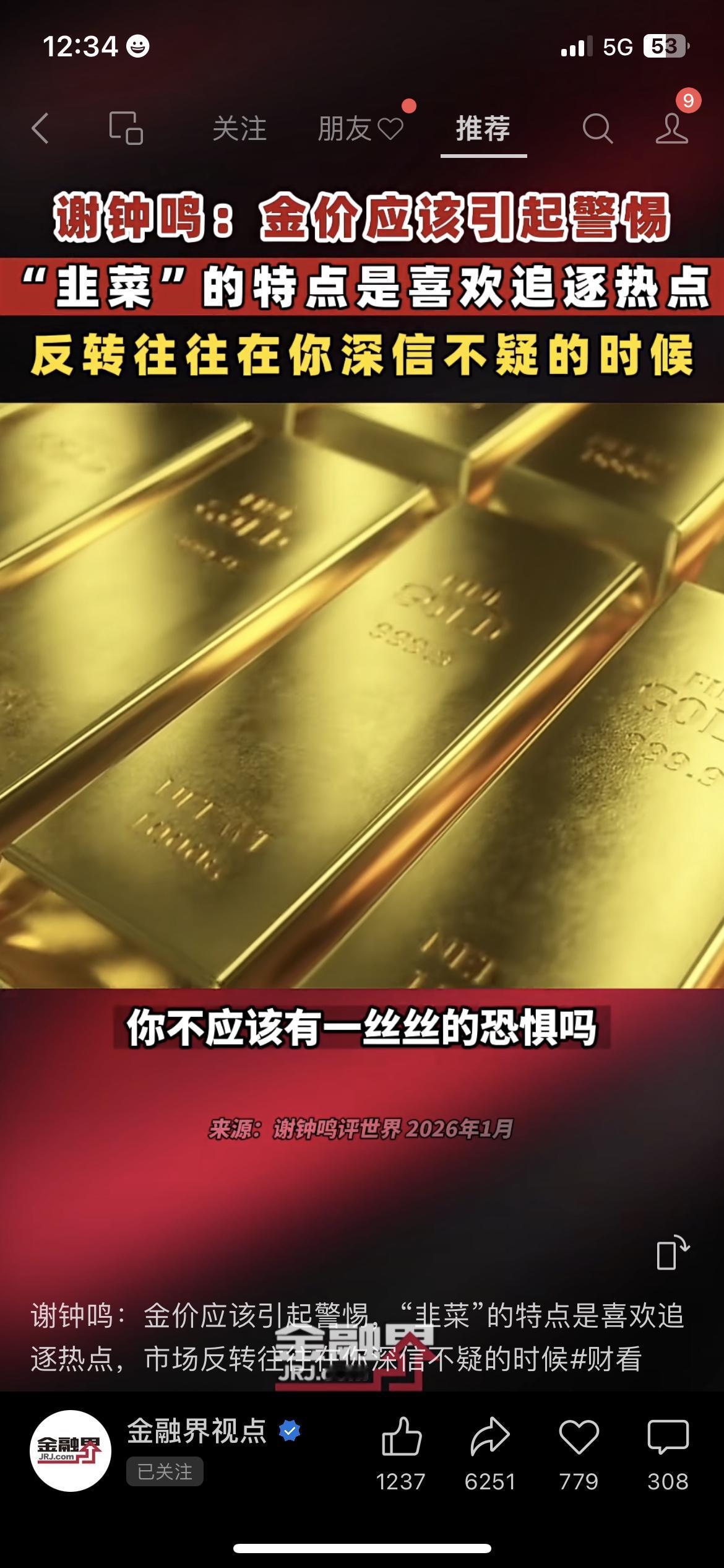 🔥 黄金创历史新高!前招行行长紧急提醒:别当最后接盘侠!🔥 💰 最近黄金疯涨破纪录,连菜市场大妈都在抢金条,但原招商银行支行行长谢钟鸣公开警示: “当所有人都在喊‘黄金必涨’时,恰恰是风险最靠近的时刻!” ⚠️ 市场真相: • 历史规律:每次全民狂热追热点,往往是行情反转的前夜 • 巴菲特“别人贪婪我恐惧”的投资逻辑,正在黄金市场上演 💡 行长避坑指南: 别被“全民看涨”的情绪裹挟,真正的投资赢家从不追热点,而是提前布局。 黄金是资产配置工具,不是短期投机筹码,盲目跟风入场,很容易成为最后一棒。 📌 市场有风险,投资需谨慎 💬 思考题: 如果现在给你10万,你会把它配置成黄金,还是分散到其他理财里?评论区聊聊你的选择! 👉 每天分享财商干货,带你避开投资陷阱! 黄金投资 财商避坑