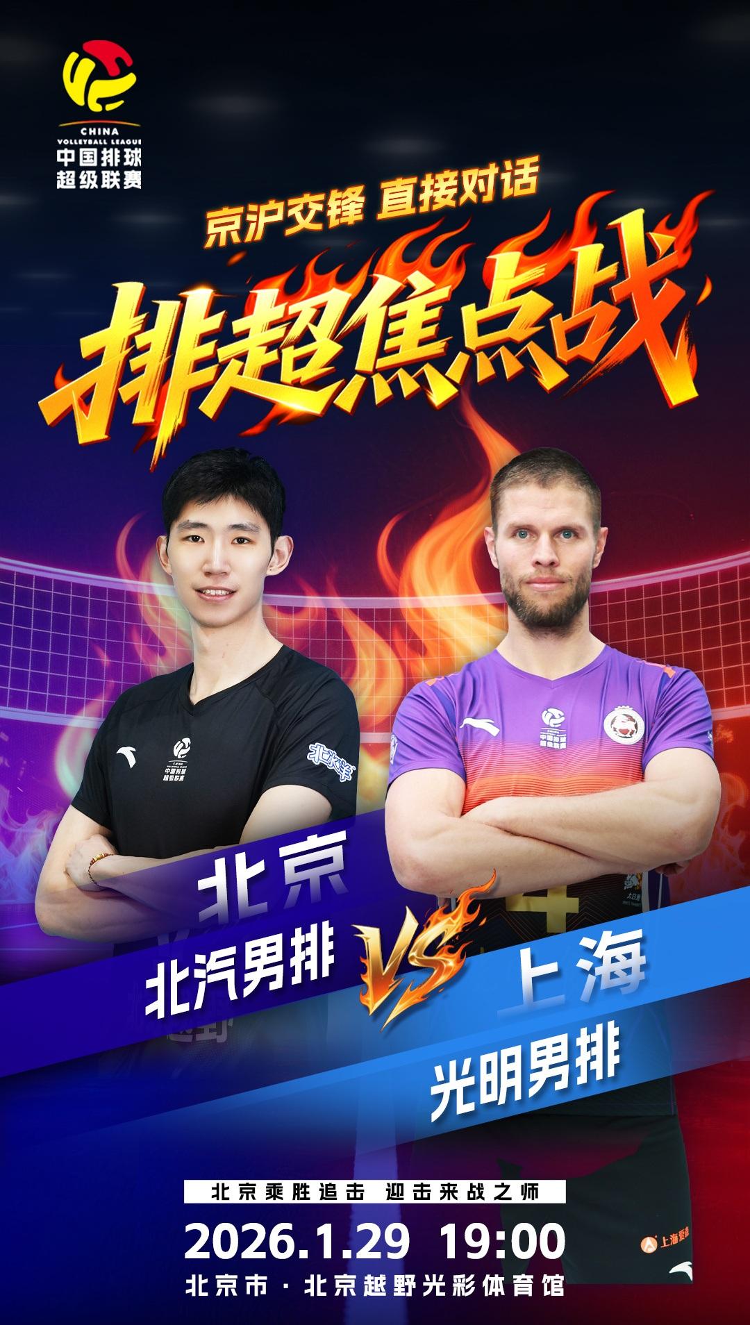 【男排联赛1月29日赛程】 中国男排超级联赛A级别第13轮 1月29日四场对决安排如下: 19:00 广东vs辽宁;北京vs上海 20:00 河北vs浙江;山东vs天津 B级别第14轮赛程如下: 19:00 湖北vs云南;江苏vs河南 20:00 四川vs福建 观赛渠道:央视频、央视体育客户端 腾讯体育、中国排球超级联赛微博 本轮焦点战无疑是京沪大战! 财大气粗的北汽还是为全运会让路 本赛季全华班出击7胜5负排第4 上海8胜4负位列第2 B级别福建11胜1负领跑积分榜