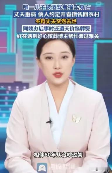 “真是太黑心了!”辽宁大连,大娘丈夫病重离世,她身无分文,只能跪着向工作单位借了2800元,她联系殡葬行业的人,却被告知,运走遗体要8000元,火化要3000元,大娘哭着说自己没那么多钱,结果对方冰冷地回应道:没钱你给我打什么电话,我告诉你,这里殡葬行业的人,我都认识,除了我,没有人敢给你办这样的事。 大娘在狭小的房子里,看着丈夫的遗体,她悲痛万分,此时的她,已无依无靠,他们唯一的儿子,已经离开了她,现在能给她遮风挡雨的丈夫,也离她而去,留下她孤苦伶仃一个人,她都不知道该怎么活下去。 她真的想随丈夫而去,可她还不能对丈夫撒手不管,丈夫已经离世了,她要让丈夫体面地离开这个世界。 可她看着手里只有2800元,想要让丈夫体面地离世,这笔钱远远不够,她看着这笔钱,又看着丈夫,内心的苦楚翻滚而来,往日的思绪又填满了她的内心。 大娘实在太苦了,本来他们一家三口,是过得很幸福的。 大娘和丈夫是邻居,两人从出生就认识,一起上幼儿园,一起上小学,一起长大,一起结婚生子。 他们青梅竹马的浪漫,羡慕了许多人,婚后的两人,甜甜蜜蜜,大娘依然如小时候那般,常常甜甜地叫着丈夫:哥哥,哥哥。 这特殊的称呼,让他们之间的感情无比亲近,他们相处60年,就没有吵过架。 丈夫深爱她,她也深深地依恋着丈夫,两人在甜蜜中,有了一个可爱的儿子。 他们的儿子非常的争气,读书成绩非常好,从来不需要他们操心,他们的生活虽然艰苦了点,但孩子不需要他们太操心,她们一心只需把心思放在挣钱上。 后来他们的儿子考上了医科大,需要一笔学费,两人便到国外打工挣钱,供儿子读书。 儿子非常争气,顺利医科大毕业,进入了医院实习,他们的儿子熬出头来了。 他们回到了儿子工作的地方,一家三口,和和睦睦,平凡又幸福地生活着。 如果没有发生意外,儿子顺利转正,他们打打零工补贴家用,他们就可以等待儿子结婚生子,他们再帮儿子看看孙子,生活就可以一直这么幸福下去。 可他们的幸福,在一场车祸中,烟消云散。 两个小伙喝了酒酒驾, 一头撞了大娘的儿子,大娘的儿子最终离世了。 他们唯一的牵挂离开了他们,他们无比痛苦,大娘的丈夫心脉受损,从此病重,大娘的丈夫时常对着大娘说:“再过两年,我们就回到没人的农村,带上头孢和酒,随儿子而去吧!” 大娘为了安慰丈夫,只能答应丈夫,丈夫也陪她熬了几年,最终他熬不住了。 丈夫离世的那天晚上,丈夫凌晨醒来,流着泪跟大娘说:“我又梦到了儿子,他在橘子树下等我。” 大娘知道丈夫实在是太想儿子了,看着痛苦的丈夫,她内心一紧,眼泪就要涌出来了,但她只能忍住,轻声细语地安慰丈夫。 可那天晚上,她和丈夫说完话之后,丈夫悲痛之中,心梗离开了她,等她醒来,丈夫已经手脚冰凉了。 看着丈夫就这样一声不吭地离开了她,大娘仿佛魂魄离身,已经麻木到感受不到心痛的滋味。 可她还是振作起来,自从儿子离世,丈夫心脉受损病重,已经痛苦地陪了她几年,如今他终于解脱了,大娘想让丈夫体面地离开这个世界。 为了处理好丈夫的后事,她只能找工作的单位预支工资,因为她的钱早就为丈夫看病,花光了。 可钱不是那么容易借来的,后来她是跪着才借来了2800元,她想着,这笔钱也应该够了。 也没想到从事殡葬的人如此狮子大开口,运遗体就要8000元,火化要3000元,还不包括其他的费用,如此算来最少也得1万多元。 大娘哪里有这么多钱呐!她在这里,无亲无故,这2800元,已经是她的全部。 现在殡葬行业的人,要那么多钱,又这么跟她说话,那就真的没有人帮她处理她丈夫的后事了。 此时的她,无助,不知所措,后来她才了解到,有一个最后的送别者,他可以提供帮助,于是大娘联系了他。 最后的送别者,他了解到了大娘悲惨的经历,他非常同情大娘,作为殡葬行业的人,他决定帮助大娘。 他帮助大娘办理手续,最后顺利帮大娘的丈夫火化了,所花的费用分别是运遗体费150元,纸棺420元,火化费900元,一共只需花了1470元。 他告诉大娘这已经是最低的价钱了,不能再低了,大娘非常感激他。 她小心翼翼地将丈夫的骨灰,放进了儿子的书包里,书包是儿子留给她的遗物,她要用儿子的书包装着自己的爱人,她小心翼翼地护着书包,她要送爱人最后一程。 看着可怜的大娘,最后的送行者,将大娘的情况告诉了老板,老板便说了一句话:“这件事我管了!” 随后最后的送行者和老板拿着1500元,给了大娘,帮她度过难关。 这一刻,大娘最后的防线破了,她不由自主地躺在地上,久久未能平静下来。 或许这1500元,让她重新找到了温情。 在这里,黑心的殡葬行业者,天价收费,这本来就是违法的。 《反垄断法》规定:禁止滥用市场支配地位,以不公平高价销售商品。 大娘遇到这种事情,可以举报他们。 那么你对大娘的事情,有何感想?