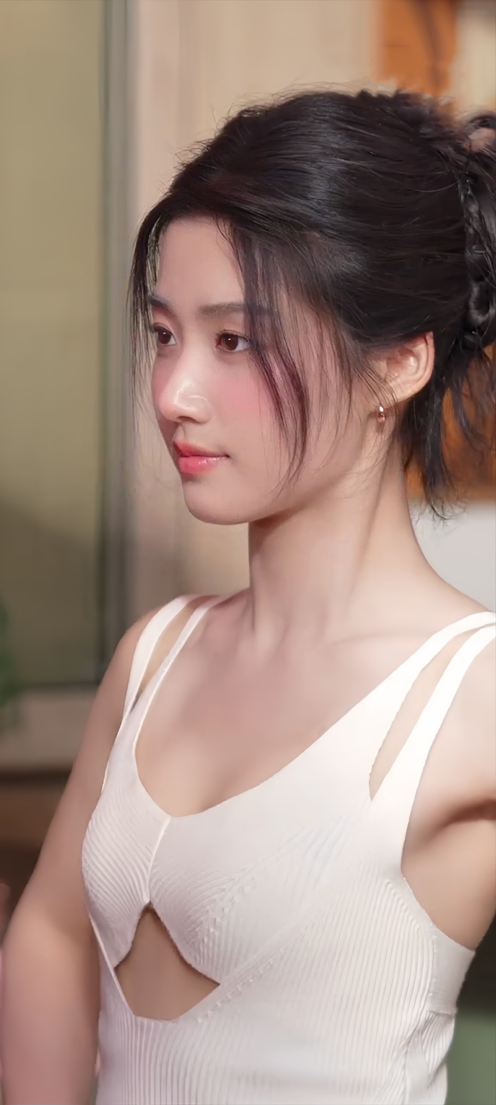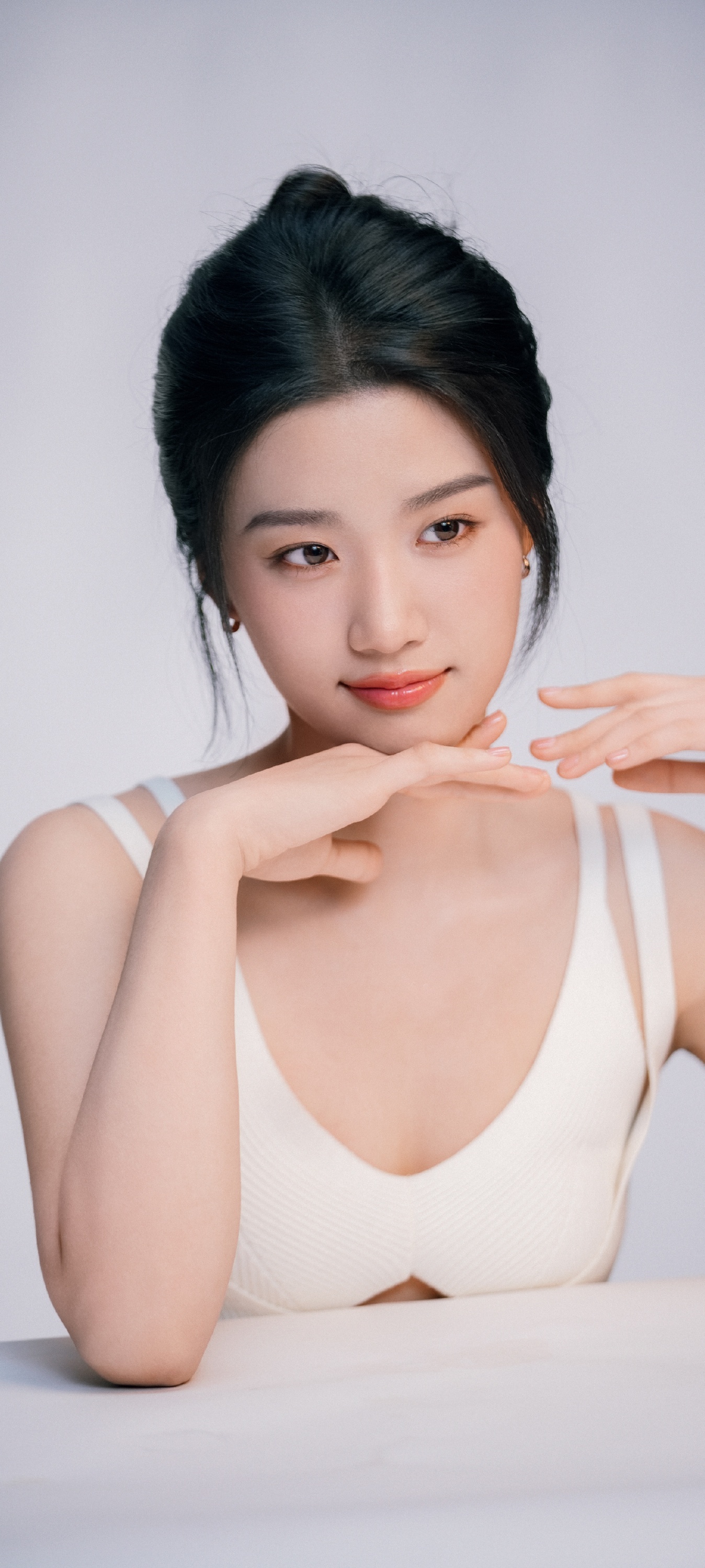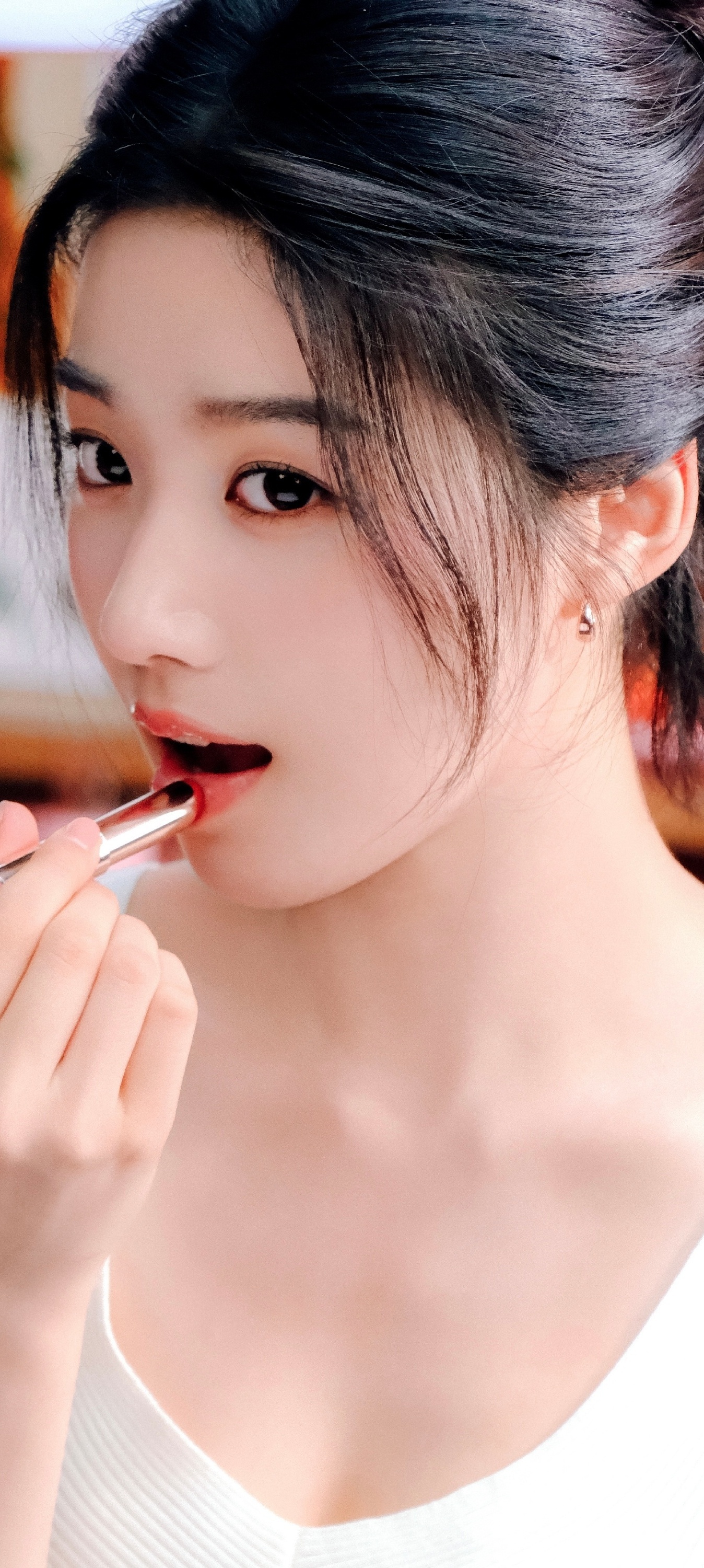 卢昱晓手机壁纸,白色系穿搭清纯甜美。卢昱晓