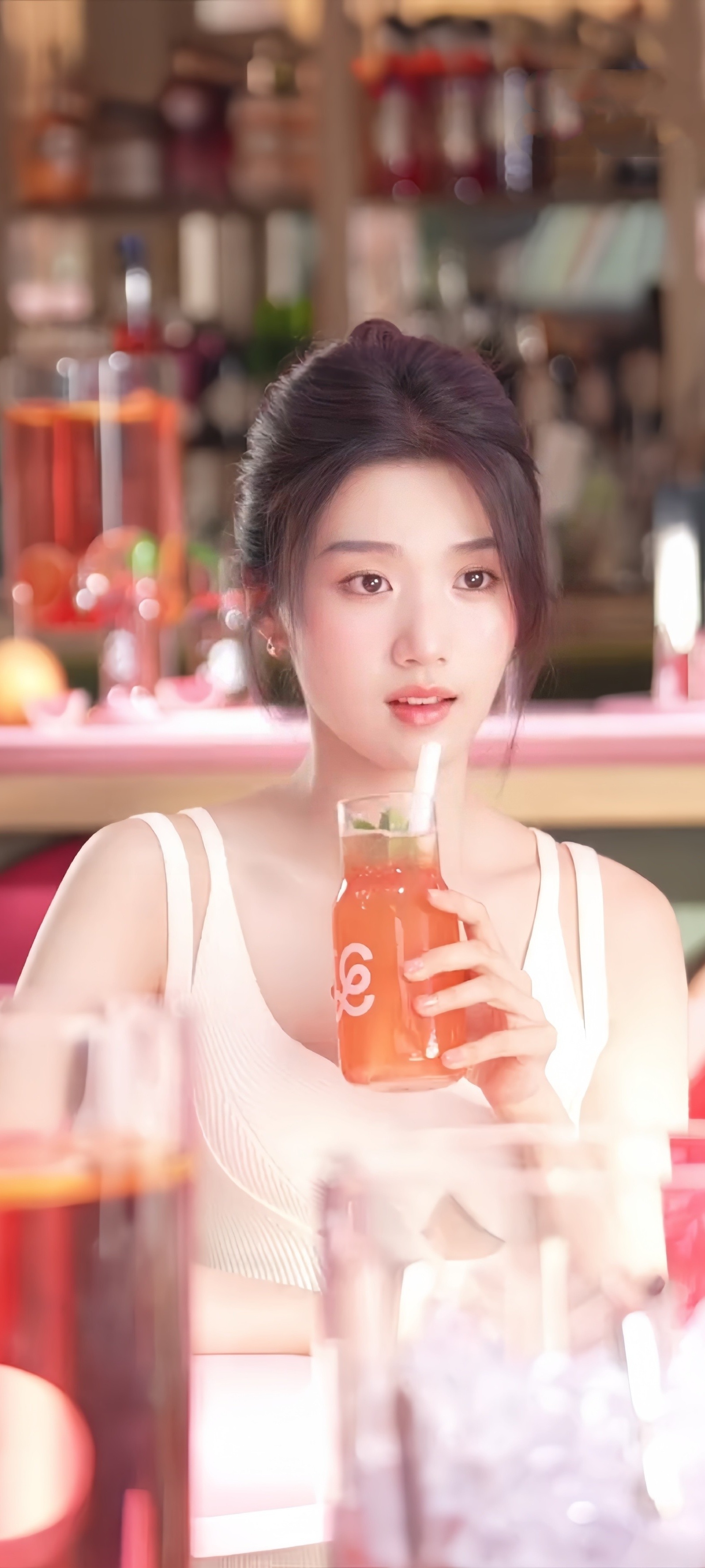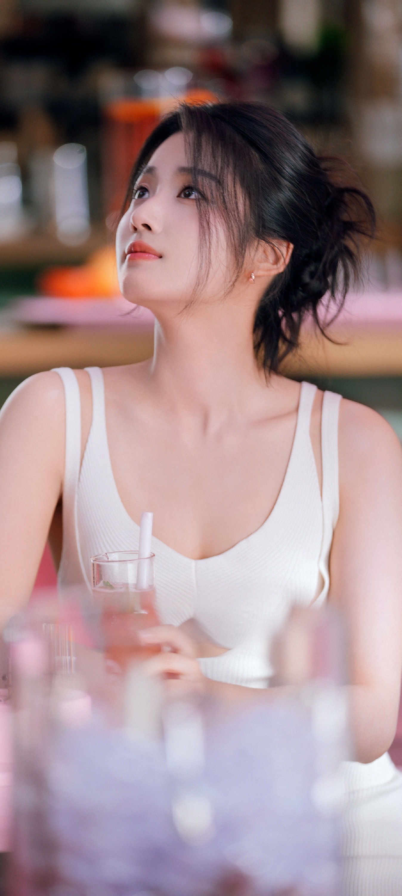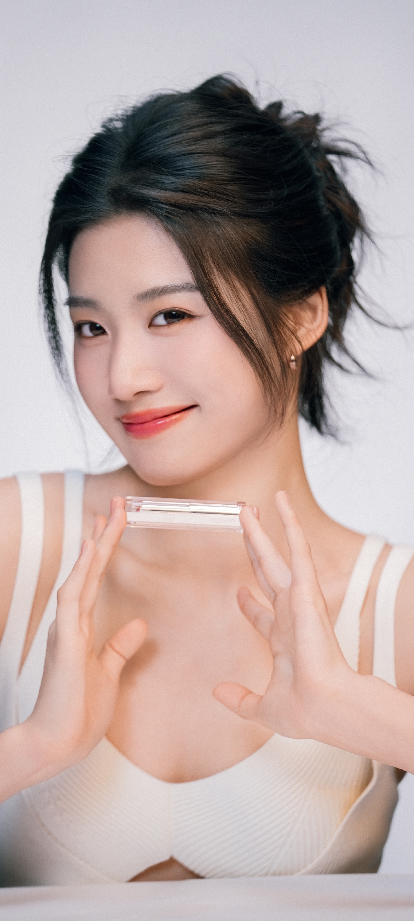 卢昱晓手机壁纸,白色系穿搭清纯甜美。卢昱晓