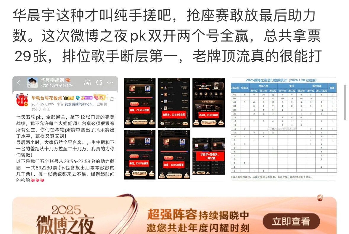 我看首页针对华晨宇和周深两家的微博之夜抢座的盘点,不得不说老牌歌手粉丝的粘性是真的强。
