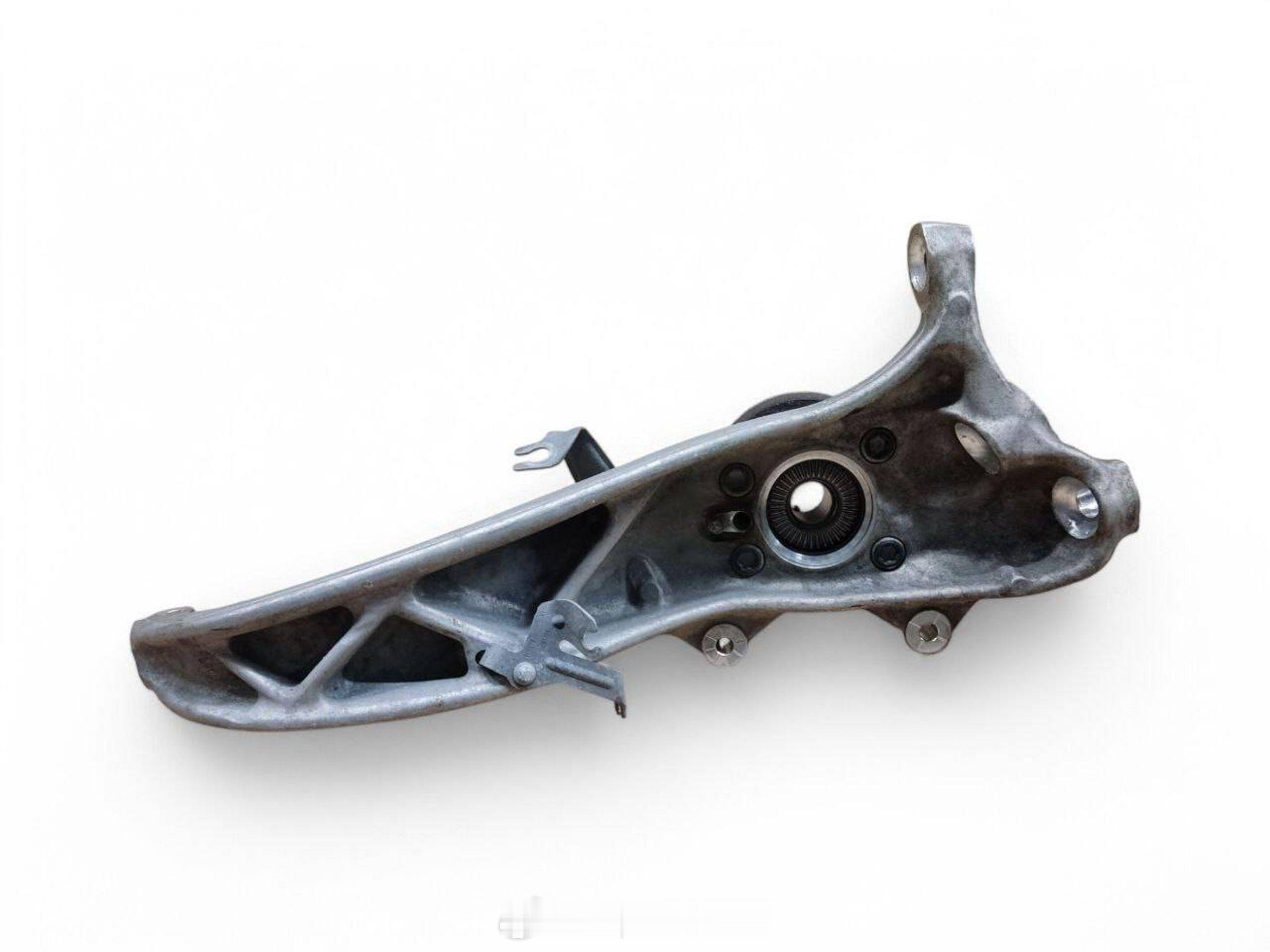 结构转向羊角 再来看看这个比之前那个全实心的稍好一点,做成开口槽结构并且带之字形加强筋,相当于实心结构上挖孔减重这种就是高压压铸出来的,结构不极致但生产效率高这种结构应该在一体化后地板的侧面上也能看到没办法做空腔,只能做开口槽,在槽内布置连续筋条