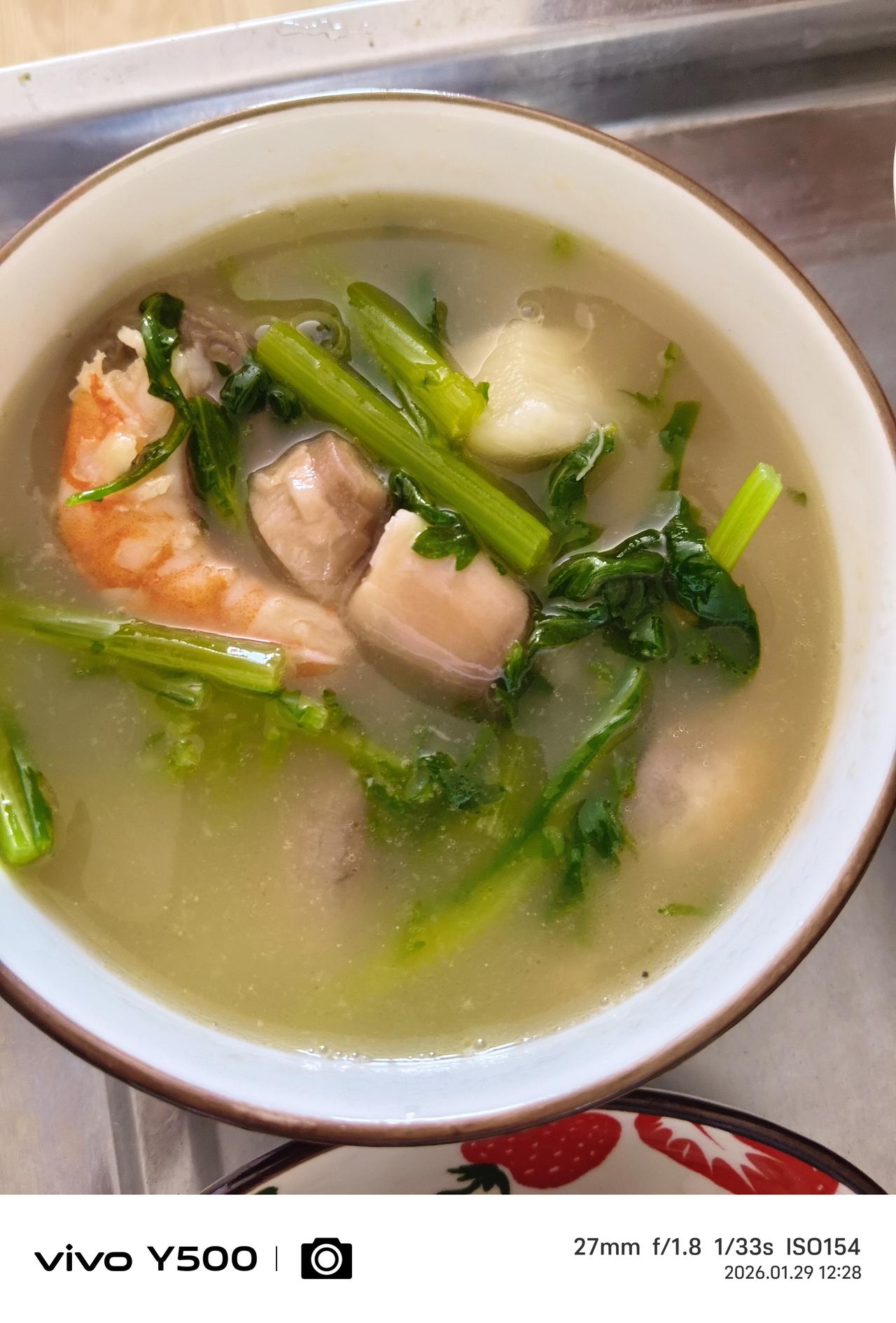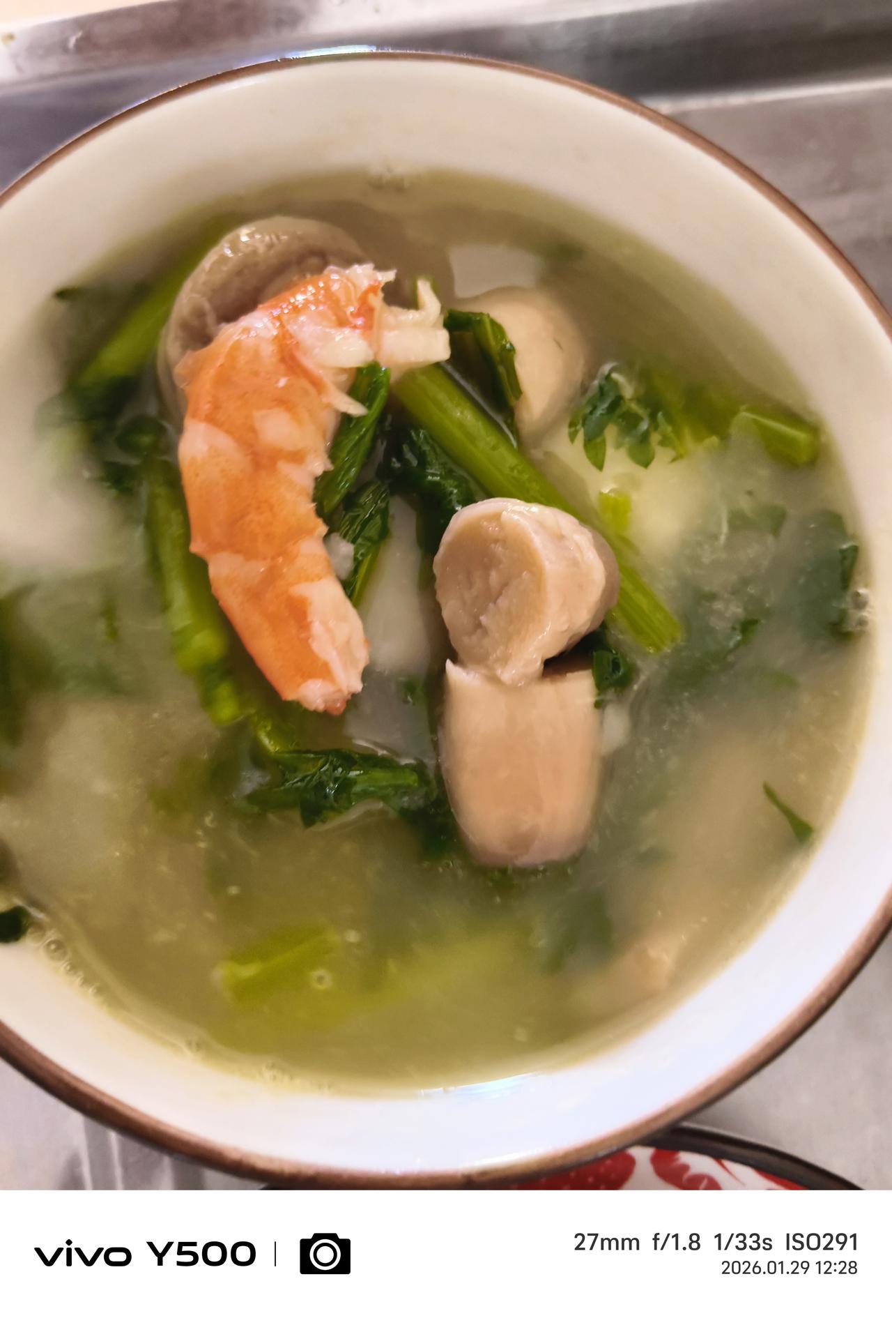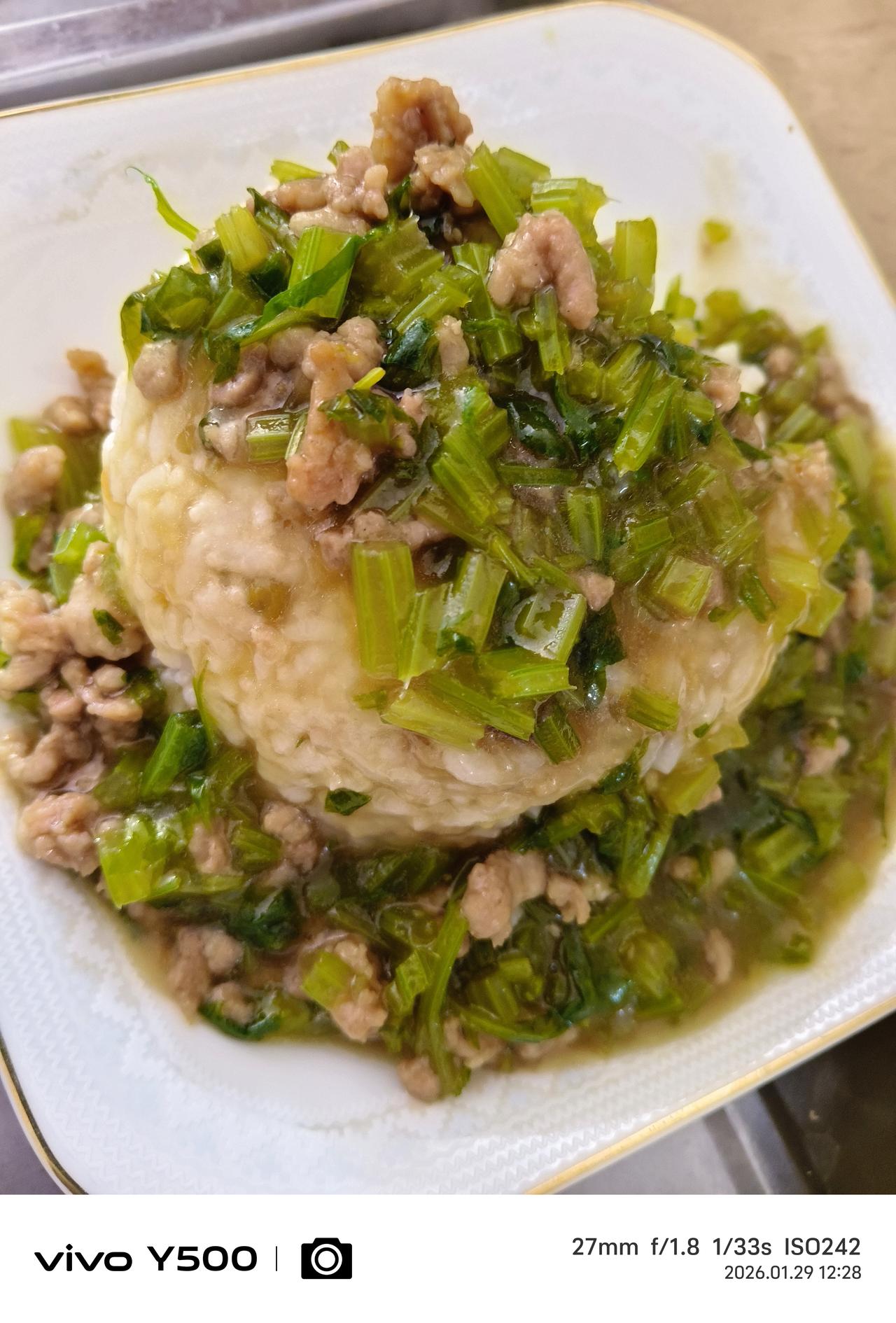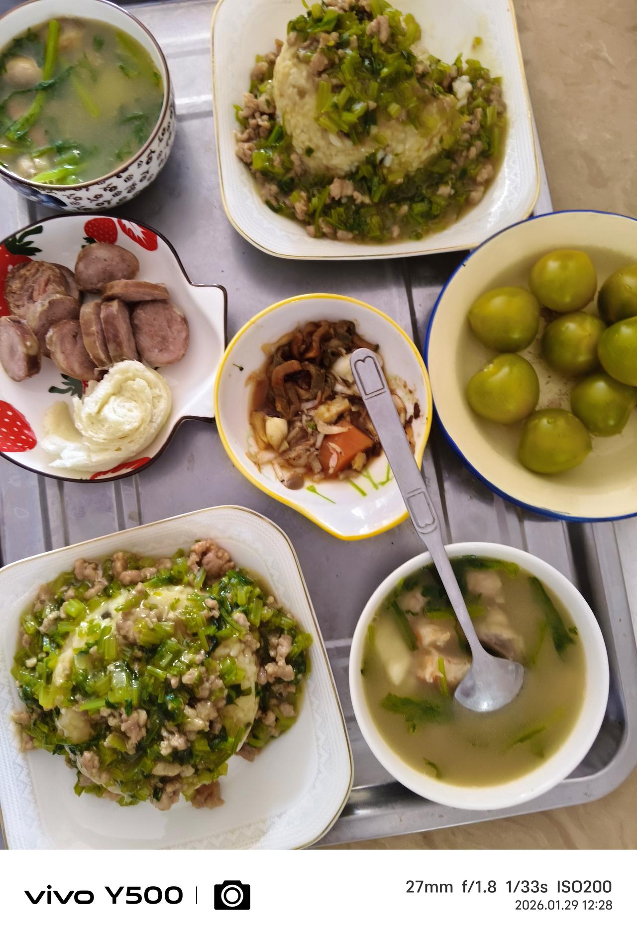 学习两款新吃法 1-芹菜粒、瘦肉粒盖饭——让芹菜更容易咀嚼消化,让饭有一种芹菜淡淡的忧伤香味。 2-口蘑、山药、茼蒿、虾仁汤——把口蘑煎一下有一种蘑菇的特殊的鲜香味,然后加水加上面提到的其他材料炖汤。 3-备用一点香肠,绿柿子,丰富一下口味和营养搭配。 都是家常食材,做起来也简单,吃的时候味道不一样。