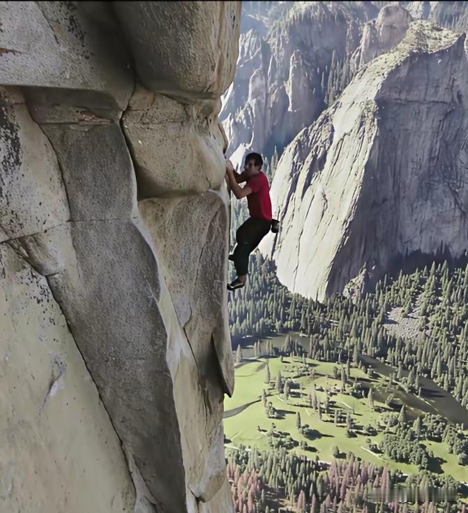亚历克斯徒手攀爬酋长岩的画面,是迄今为止看过的最惊险的攀爬画面,没有佩戴任何保护设施,对他来说,只有成功,没有失败,因为失败就代表着生命的终止、肉体的消亡,明明知道这是一条充满危险的攀爬之路,稍有不慎就万劫不复,可是他根本就不在意这些,他在意的是登顶,他在意的是成功,真是搞不懂这些大伽们是怎么想的!