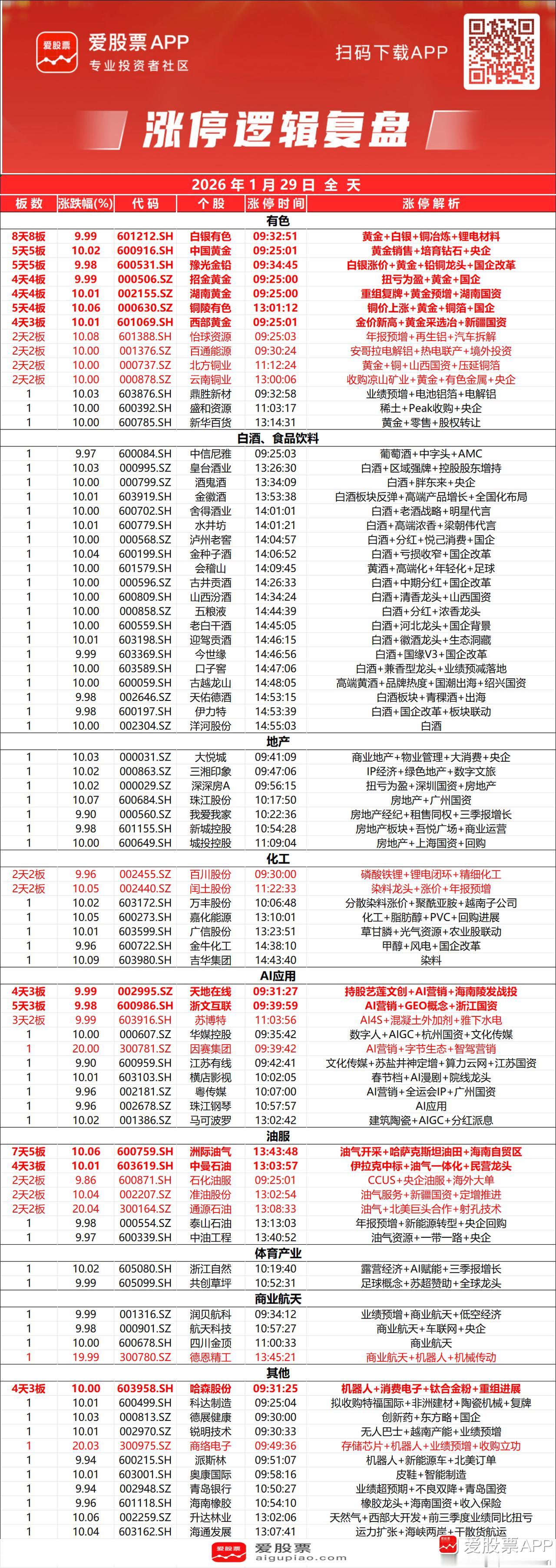 1.26复盘:黄金有色领涨,主线轮动节奏清晰