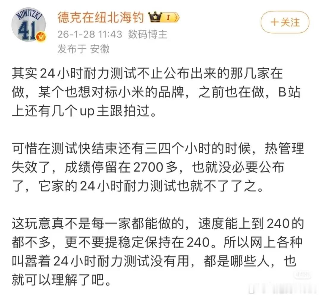 啊,还有小米SU7的竞品去跑过24小时耐力啊到底是谁呢,居然是热管理顶不住了