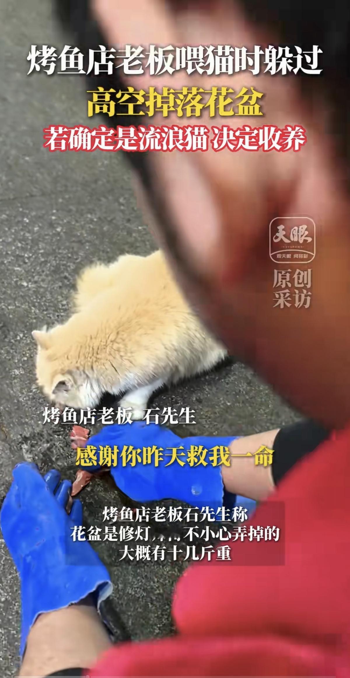 不是猫咪“救”了他,而是他的善良让自己躲过了高空坠落的花盆。 贵阳那家烤鱼店的