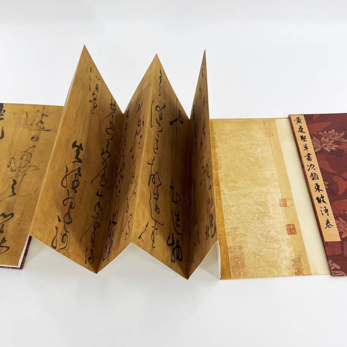 黄庭坚醉酒后,写出一部千古奇作,水平完胜师父苏轼,900年无人超越! 说到草书界的“三大巨头”,有人选择王羲之、王献之,有人支持张旭、怀素,实际上,若从草书发展,以及学习价值的层面分析,真正入围者,除了“张怀”,就是宋朝“草圣”——黄庭坚。 对比苏轼、米芾等人,黄庭坚的名号,确实不如他们高,虽然位列“宋四家”,但是数百年来,他与蔡襄获得的关注偏少,甚至许多人对其了解,仅仅停留在诗词和行书,知晓长枪大戟、大开大合之风。 其实黄庭坚的草书,远比行书精彩,据史料记载,他乃是苏轼的徒弟,继承古法,吸取正统的“尚意”之风,为了超越老师,他另辟蹊径,一门心思研究草书。 众所周知,宋朝推崇“意造无法”,强调个性和意趣,尽显本真之美,乍一听,这种风格与草书贴合,但在宋朝,书家选择行书居多,极少有人擅写草书。 黄庭坚发现这一现象,于是全力钻研草书,他把张旭、怀素的狂逸之风,“二王”遒和灵活的笔法,与自身“荡桨笔法”和“唐楷”笔意结合,练就一手奔放纵逸、飞动波折的草书。 刘敏中曾评:“浩浩乎如行云,倏乎如流电如惊蛇如游龙,意态横出,不主故常,当使人心动目眩而莫知其然也。静而察之,无一画之违于理”,黄庭坚的草书,一别“张怀”诡谲连转。 他以开张、纵横的势态,彰显气魄,风貌十分个性,比如我们欣赏《草书次韵东坡诗》,此帖又名《临苏轼海棠诗卷》,黄庭坚醉酒后写的“千古奇作”,内容是老师苏轼的诗歌,全卷共有22页,每页纵约32厘米,横约17.5厘米 总长超过3.8米,共计将近300字,单字在4~9厘米之间,笔画遒劲飞动、开张骏健,就像“也”字最后一笔,十分瘦劲细长,占据2个字的位置,墨色随着运笔而枯涩,极尽郁勃浑穆之象,境界高深,艺术效果鲜明。 这幅《草书次韵东坡诗》水平完胜师父苏轼,900年无人超越,还是罕见的纸本真迹,字体完整,墨色润丽,笔画细节清晰,非常适合临摹,可从中学习草书技巧,感受黄庭坚的创新之处,开阔思维和眼界,为日后个人创作奠定基础。 而今,我们对黄庭坚《草书次韵东坡诗》,进行1:1超高清复刻,采用博物馆级别,12色微喷复刻工艺,与原作毫无二致,此品乃是手工经折装,装裱精细,便于翻折和临摹。 字体十分高清,市面罕见,独此一家,比普通印刷品更加还原、细腻,所有细节处理,全都一览无余,见此品如见原作,若您喜欢可点击下方商品链接一观。 黄庭坚草书次韵东坡诗卷 台博藏高清原大微喷复刻手工经折装