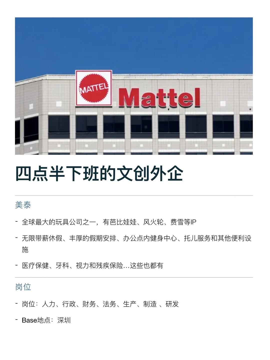 有对文创IP感兴趣的宝吗,真心可以试试去文创外企上班,一家比一家香 ▪️不管是喜欢画画、设计,还是对IP、品牌内容感兴趣的人,都能在这里找到合适的方向。岗位也不仅限于设计,还有品牌、市场、内容运营...等等整体氛围开放、创意感强,对女生超级友好 而且作为外企,该有的福利基本都有:年假15天⑦,支持Hybrid Work制,加班少氛围好,真的很不错 坚持日更✊🏻,对外企感兴趣的欢迎常来看看