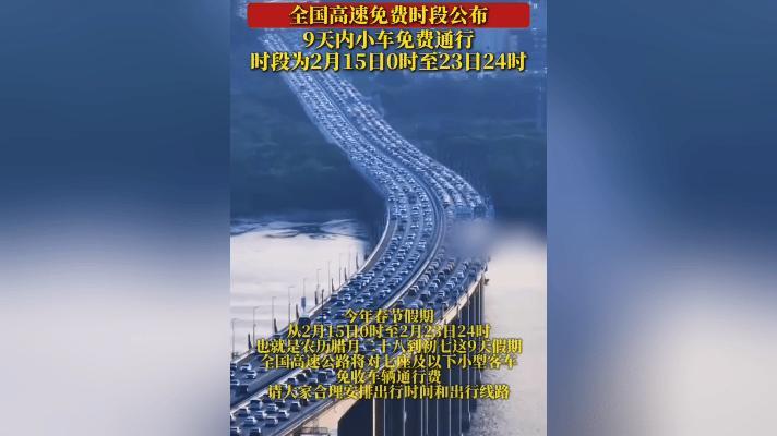 官宣!春节高速免费9天,央视已确认 刚从央视新闻刷到的好消息,2026年春节高速免费政策定了!从2月15日到23日,足足9天,把腊月二十八到正月初七全包圆,自驾回家、出游的朋友可算能松口气。 不管是家用轿车、运动型多用途汽车,还是合规的摩托车、挂绿牌的新能源车,只要是7座及以下非营运小客车,都能享这福利。最省心的是,哪怕是23日当天上的高速,只要在24时前驶离出口,就不用掏过路费,完全不用掐着点赶路。 这波政策太贴心,直接给春运出行减了负担。你打算趁着免费去哪儿?评论区聊聊计划。点赞、评论、转发,把这消息转给要开车出门的亲友!