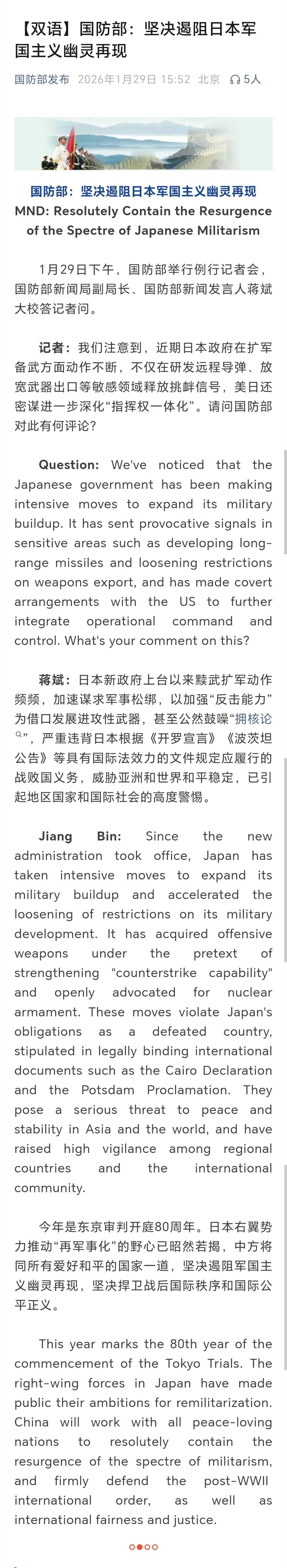 国防部回应日本扩军备武动作不断国防部:坚决遏阻日本军国主义幽灵再现