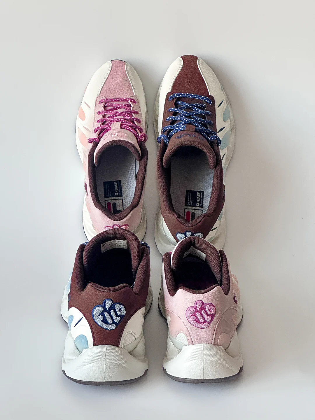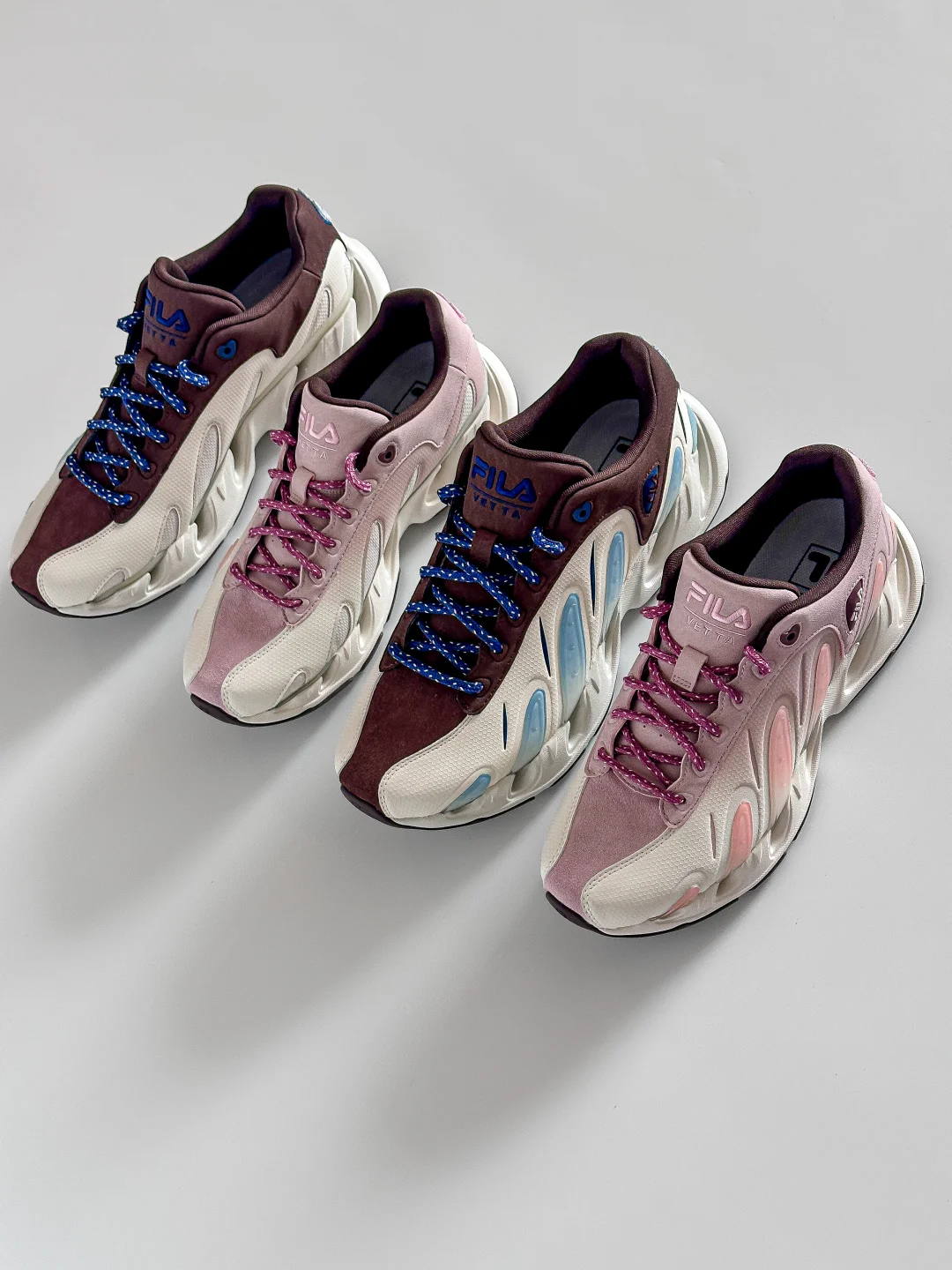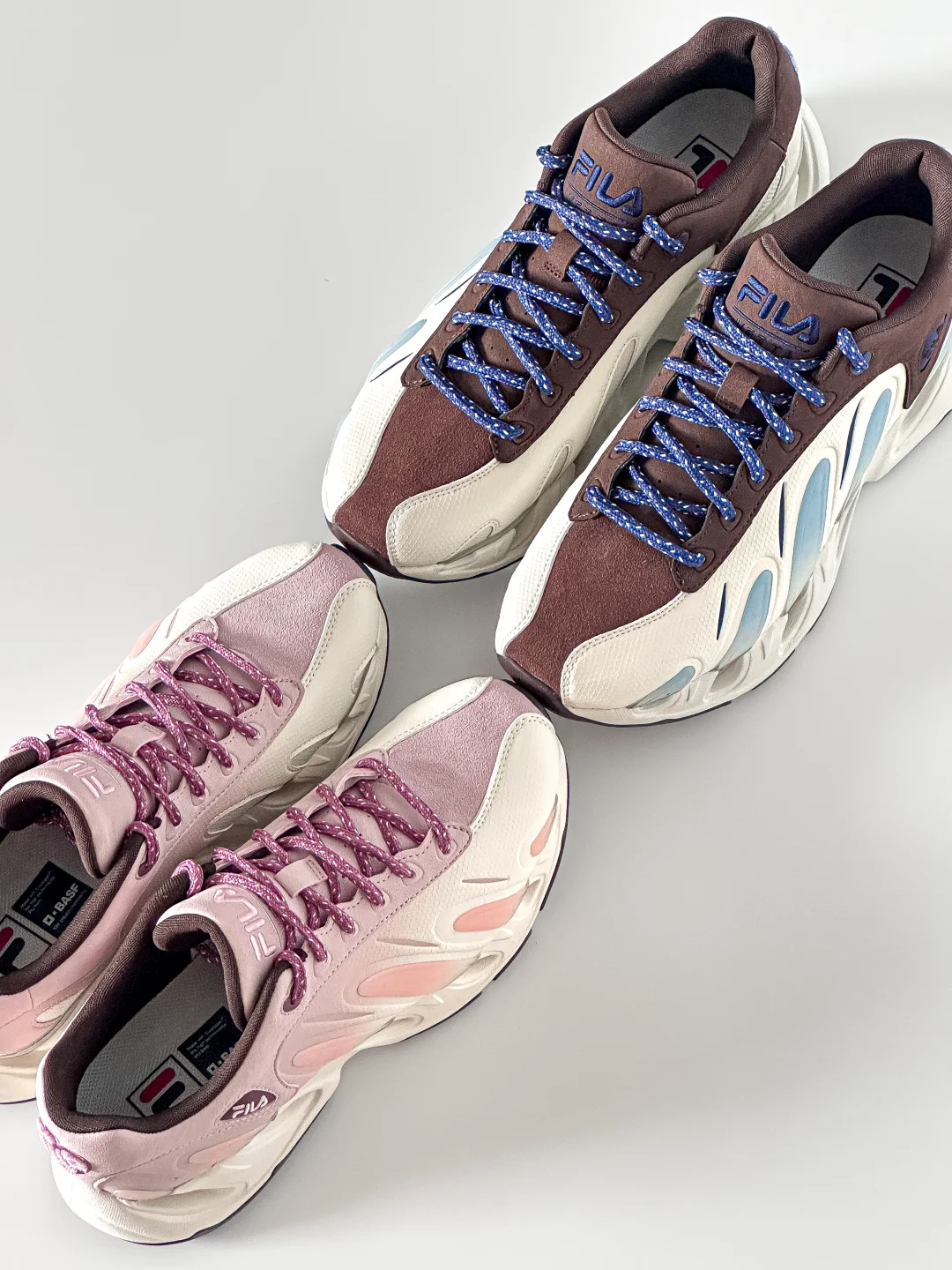 无意外、又一次!情侣鞋选择了FILA VETTA❗️ 不仅黑白色、原来[💘粉蓝CP]也能被V头鞋演绎的这么好看。