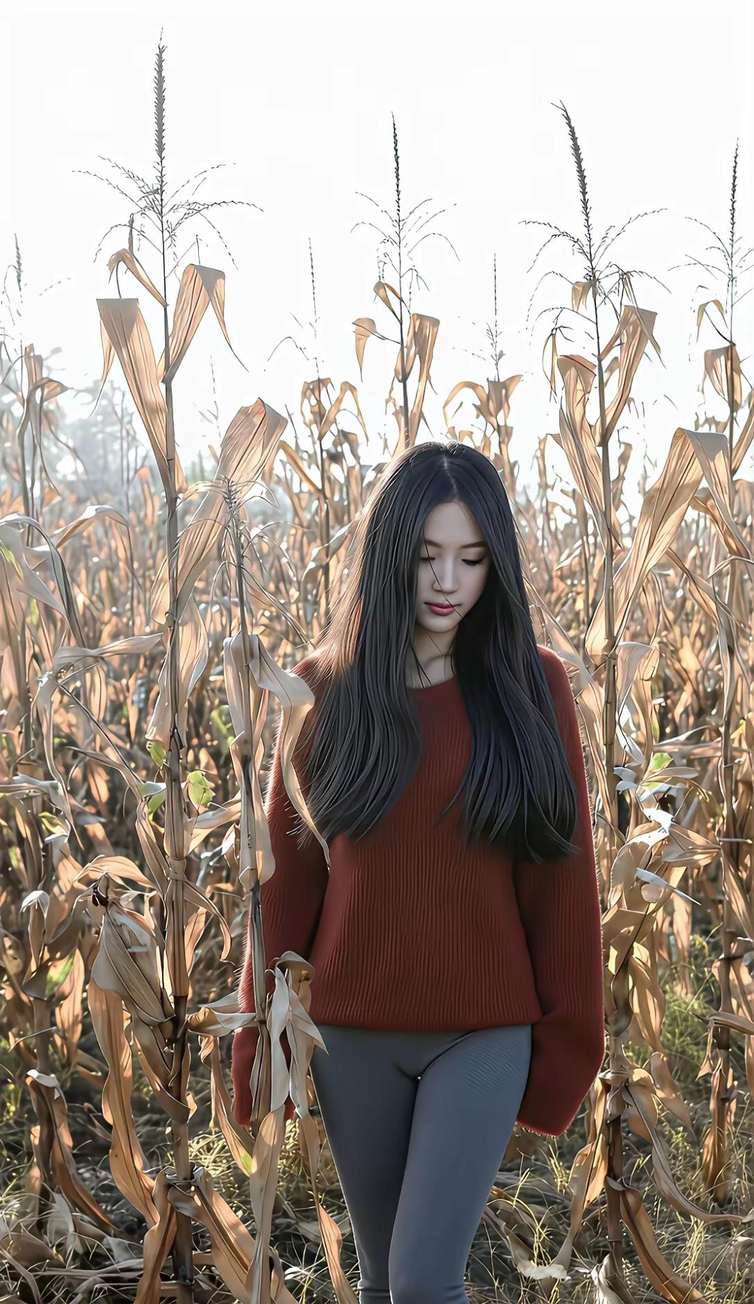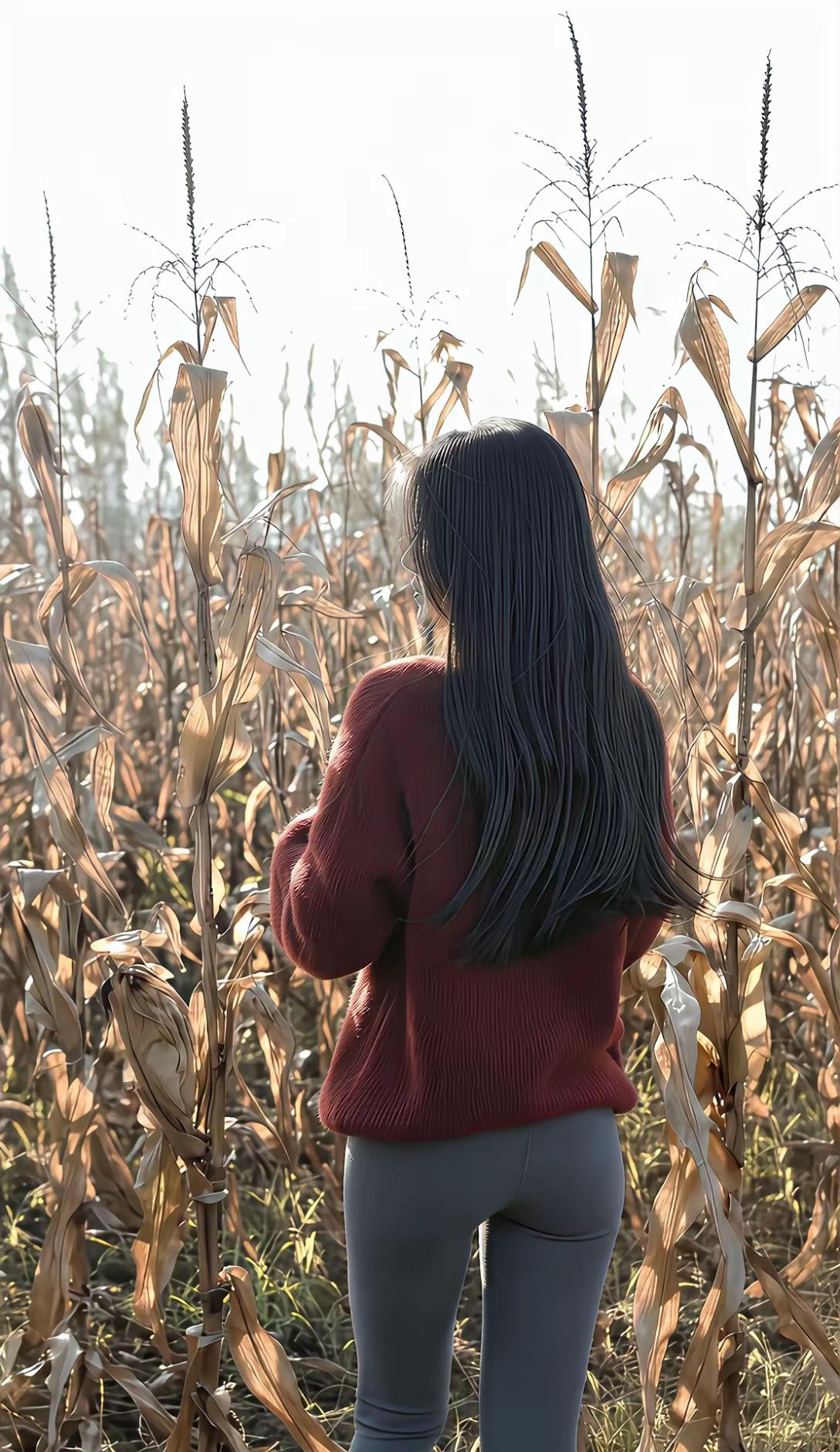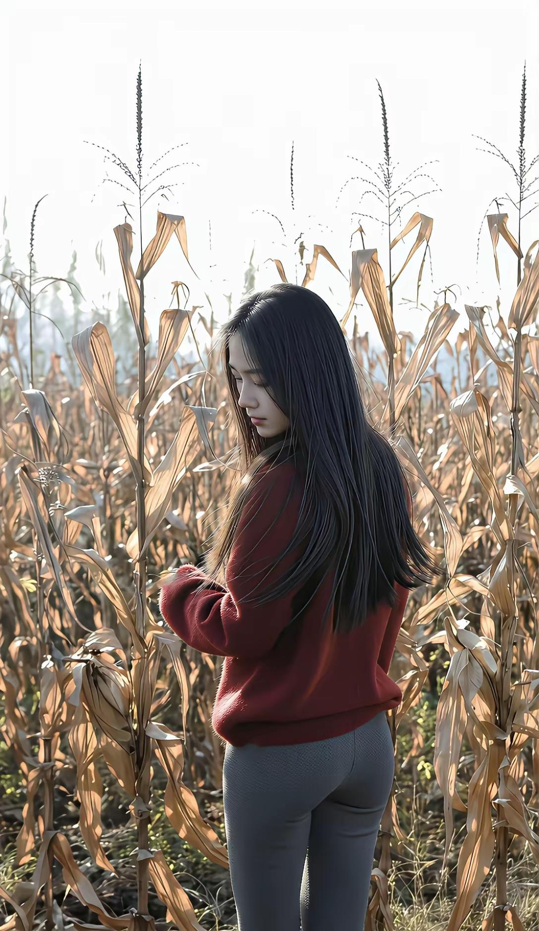 秋风起,稻田里,美人倚。
