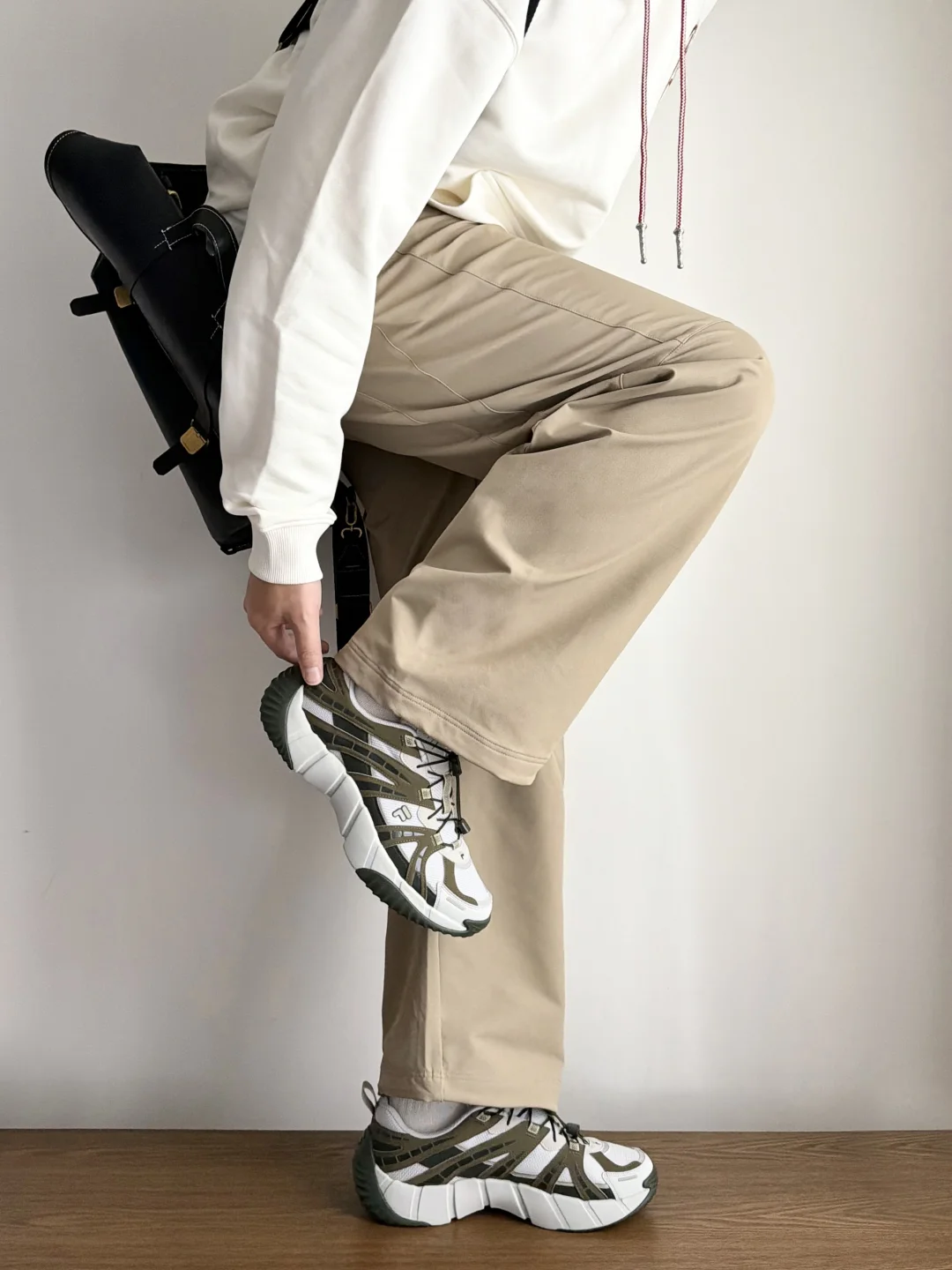 脊骨鞋的绿灰碰撞得很有层次感,清冷调的灰+自然有生机的绿,很山系的配色,骨骼感线条超A超点睛,抽拉系带设计方便还添了机能风,鞋型显瘦,穿搭的话,再加上一条URBAN TECH系列裤子,无论是户外风还是通勤风都很好搭配。