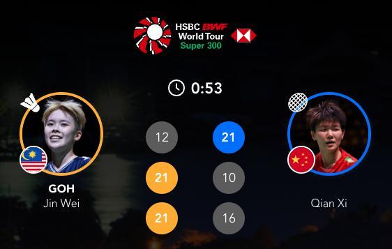 韩千禧🇨🇳 21-12、10-21、16-21 🇲🇾吴堇溦2026年泰国羽毛球大师赛