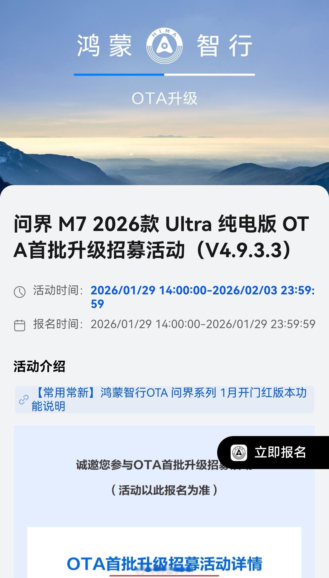 M7纯电这波新增与优化的功能有点多,果断报名了,不知道能不能选上。问界新m7